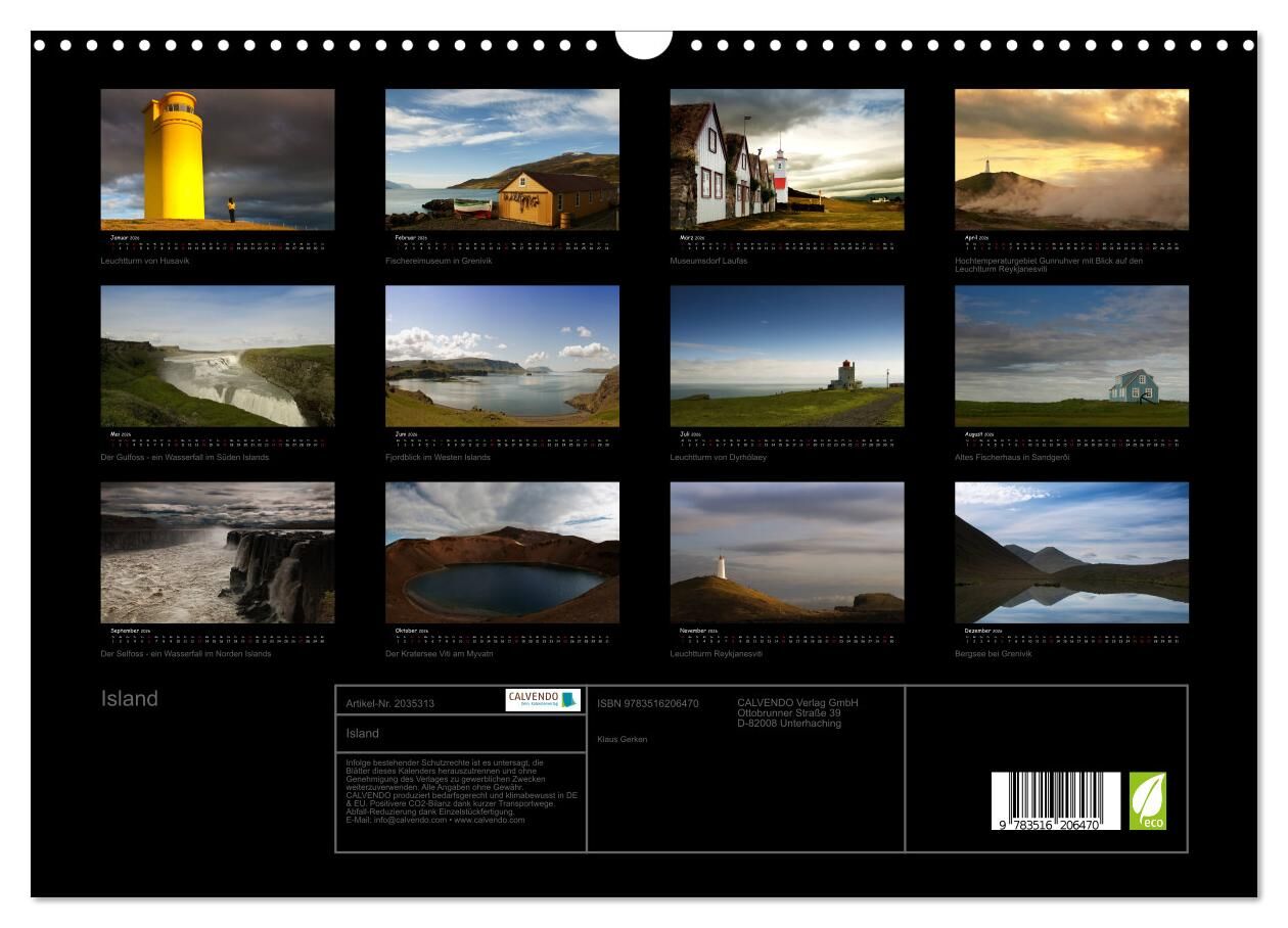 Ein Kalender, der die Vielfältigkeit und Schönheit Islands präsentiert. Ständig wechselnde Licht- und Wetterverhältnissse in Verbindung mit traumhaften Motiven sind in einzigartigen Momenten festgehalten durch den Fotografen Klaus Gerken.