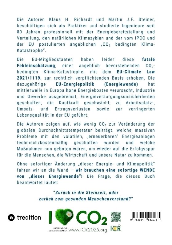 Die Autoren Klaus H. Richardt und Martin J.F. Steiner, beschaftigen sich als Praktiker und studierte Ingenieure seit 80 Jahren professionell mit der Energiebereitstellung und Verteilung, den naturlichen Klimazyklen und der vom IPCC und der EU postulierten ange...