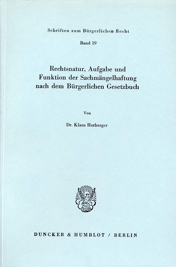 Rechtsnatur, Aufgabe und Funktion der Sachmängelhaftung nach dem Bürgerlichen Gesetzbuch.
