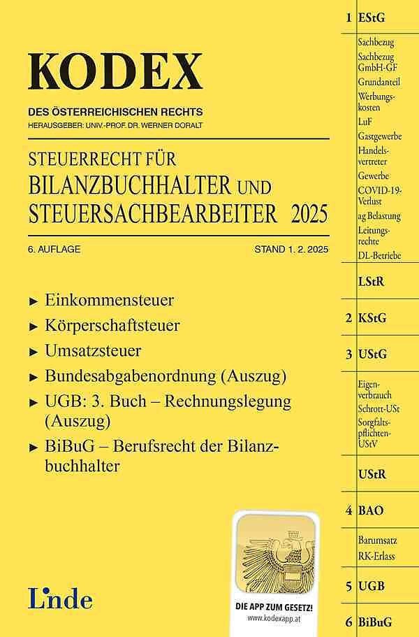 Auflage, Stand 1.2.2025 Mit der App zum Gesetz Einkommensteuer Körperschaftsteuer Umsatzsteuer Bundesabgabenordnung (Auszug) UGB: 3. Buch Rechnungslegung (Auszug) BiBuG Berufsrecht der Bilanzbuchhalter KODEX für Bilanzbuchhalter und Steuersachbearbeiter 20...