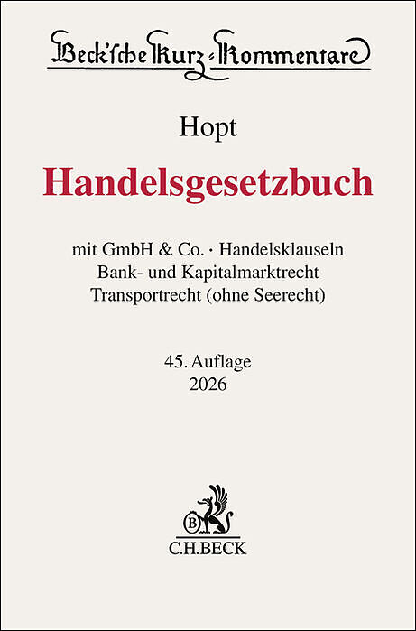 Zum Werk Dank seiner thematischen Spannweite und seines hervorragenden Preis-Leistungs-Verhältnisses ist der für die Praxis optimierte "Hopt" der beliebteste Wirtschaftsrechtskommentar seiner Klasse. Der jährliche Erscheinungsrhythmus bürgt für verlässliche Ak...
