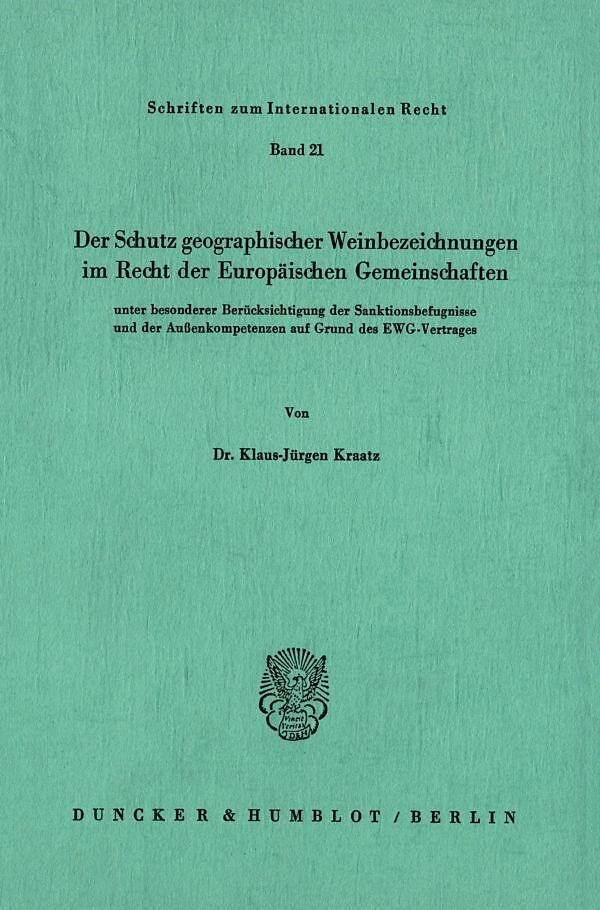 Der Schutz geographischer Weinbezeichnungen im Recht der Europäischen Gemeinschaften unter besonderer Berücksichtigung der Sanktionsbefugnisse und der Außenkompetenzen auf Grund des EWG-Vertrages.