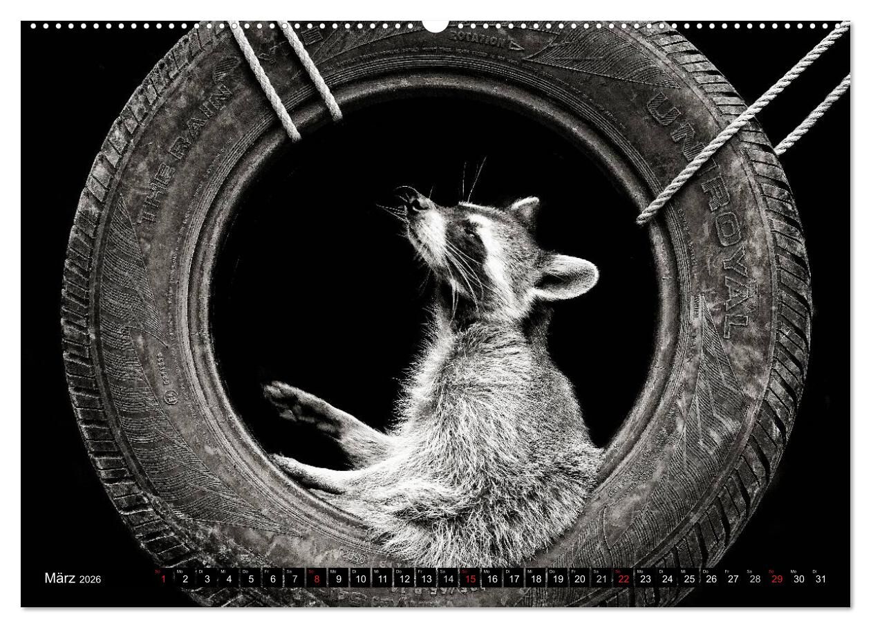Waschbären - Maskierte Gauner (hochwertiger Premium Wandkalender 2026 DIN A2 quer), Kunstdruck in Hochglanz