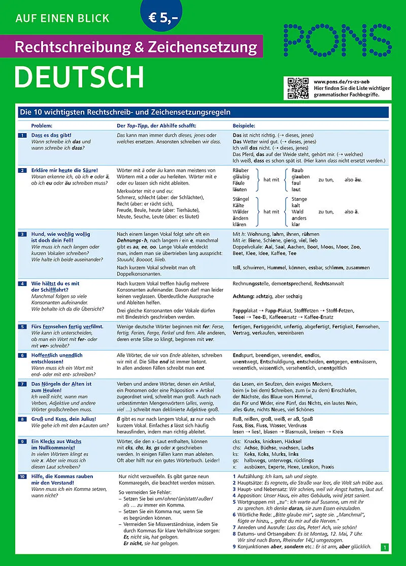 Die "Rechtschreibung und Zeichensetzung auf einen Blick" eignen sich für Schüler, Studenten und Sprachkursteilnehmer. Sie erhalten hier kompaktes Wissen - immer griffbereit. Die Blätter eignen sich fürs schnelle Nachschlagen und bieten eine optimale ...