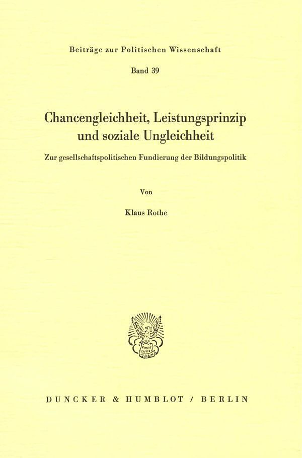 Chancengleichheit, Leistungsprinzip und soziale Ungleichheit.