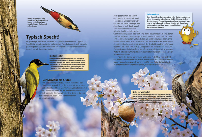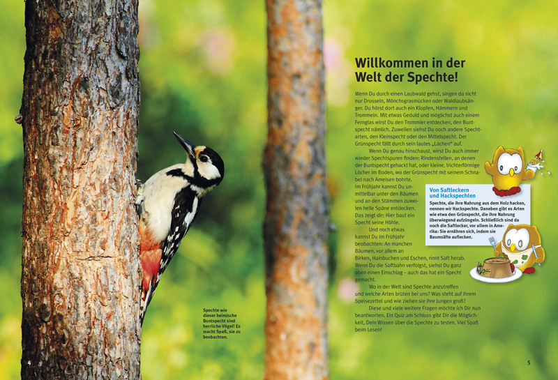 Das Hämmern der Spechte kennt jedes Kind. Aber warum hämmern und trommeln sie überhaupt? Und wieso bekommen sie davon keine Kopfschmerzen? Was fressen Spechte? Welche Arten der munteren Kletterkünstler leben bei uns? Wie können Kinder Spechte beobachten und wa...
