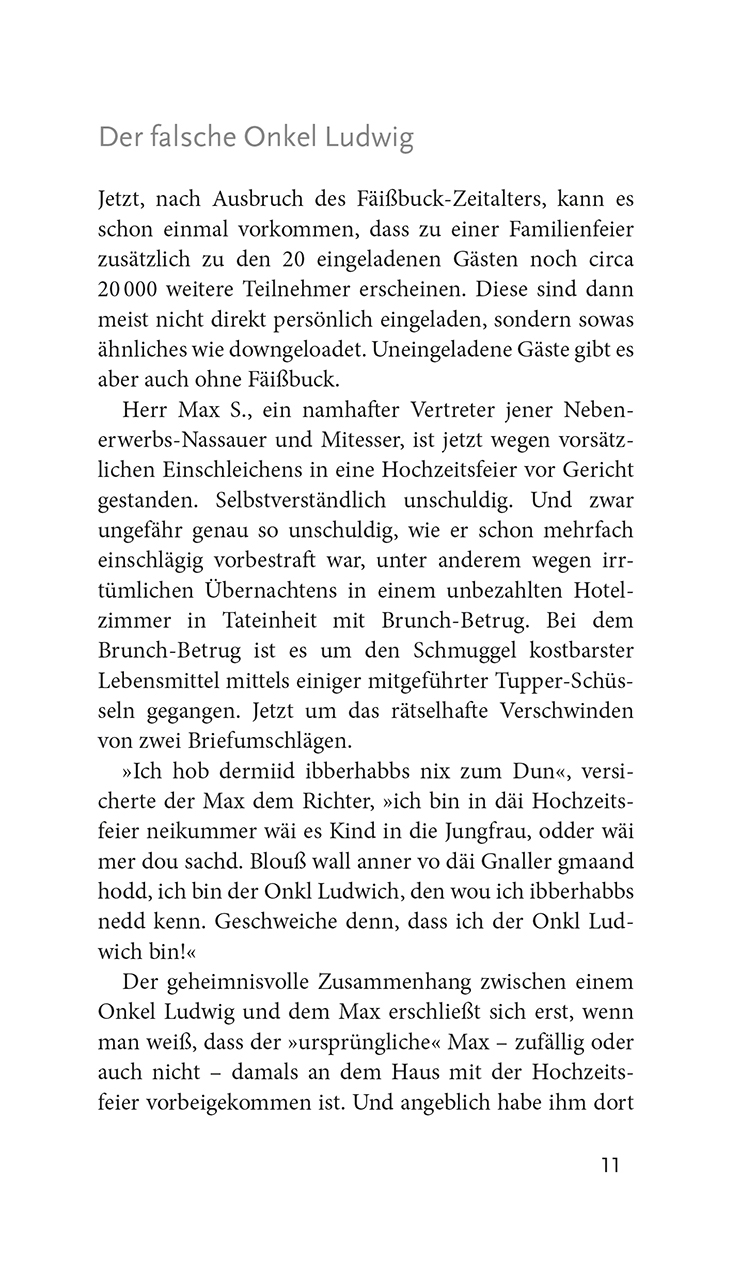 Mutwilliges Kirschkernspotzn in ein Damen-Dekolleté, hinterlistiger Brunch-Betrug in Tateinheit mit unerlaubter Teilnahme an einer Hochzeit, heimtückischer Raub einer porzellanenen Gänseliesl aus dem Hause Hummel Richtig geraten: Klaus Schamberger ist zurück, ...