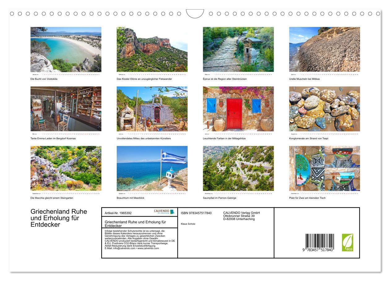Griechenland Ruhe und Erholung für Entdecker (Wandkalender 2026 DIN A3 quer), CALVENDO Monatskalender