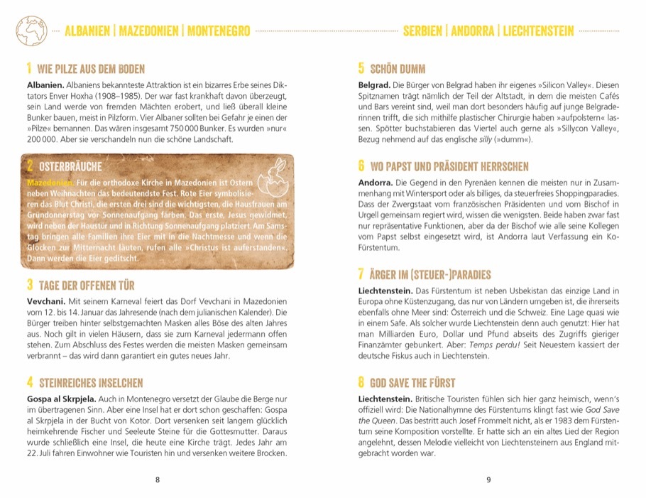 Wussten Sie, dass es eine Ziege war, die einst die wach machende Wirkung von Kaffee entdeckte? Ja? Doch wo auf der Welt trug sich diese Entdeckung zu? Und haben Sie schon von der Toilette aus purem Gold gehört? Vielleicht. Doch an welchem Ort kann man sie aktu...