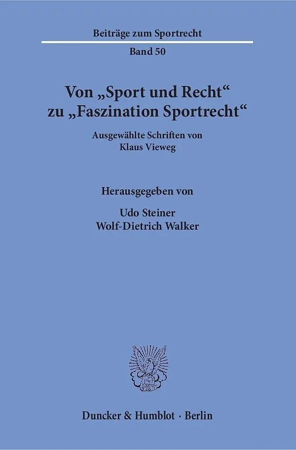 Der Band enthält eine Auswahl der sportrechtlichen Beiträge von Klaus Vieweg aus den Jahren 1983 bis 2015, die in chronologischer Reihenfolge erstmals zusammen veröffentlicht werden. Der Titel dokumentiert, dass sich das Sportrecht in diesen Jahren zu einem ei...Der Band enthält eine Auswahl der sportrechtlichen Beiträge von Klaus Vieweg aus den Jahren 1983 bis 2015, die in chronologischer Reihenfolge erstmals zusammen veröffentlicht werden. Der Titel dokumentiert, dass sich das Sportrecht in diesen Jahren zu einem eigenständigen, faszinierenden Rechtsgebiet entwickelt hat. Querschnittscharakter und Dynamik der Materie spiegeln sich in der Vielfalt der behandelten Themen wider.