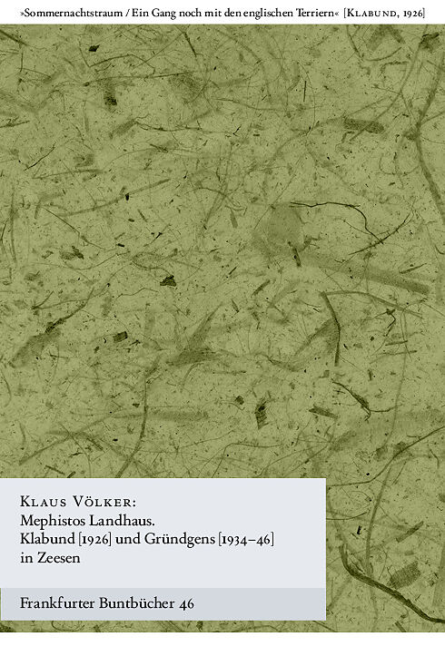 Für Band 46 der Reihe Frankfurter Buntbücher hat Klaus Völker den Titel Mephistos Landhaus gewählt, weil hier von 1934 bis 1946 Gustaf Gründgens residierte, der von Hermann Göring berufene Leiter des Preußischen Staatstheaters in Berlin. Seine erfolgreichste R...