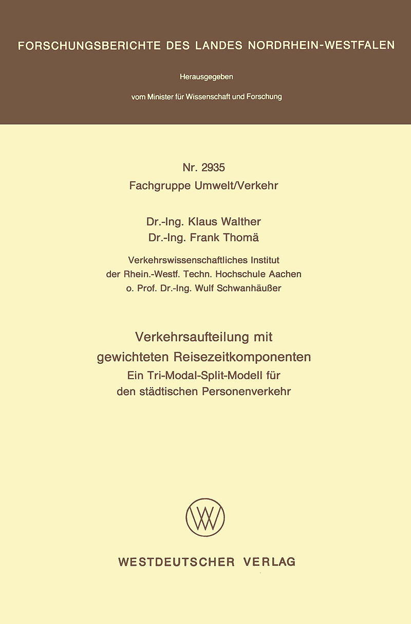 Inhalt Anlass und Zielsetzung.- Abriss zur Verkehrsaufteilung.- Die Reisezeit als Kriterium bei der Verkehrsaufteilung.- Entwicklung Eines Verhaltensorientierten Modells for die Verkehrsaufteilung auf der Basis Gewichteter Reisezeitkomponenten.- Ergebnisse.- R...