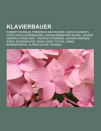 Quelle: Wikipedia. Seiten: 63. Kapitel: Robert Wornum, Frederick Mathushek, Muzio Clementi, Liste von Klavierbauern, Johann Bernhard Klems, Johann Diedrich Rädecker, Theodor Steinweg, Johann Andreas Stein, Schiedmayer, Ignaz Josef Pleyel, Ignaz Bösendorfer, Al...