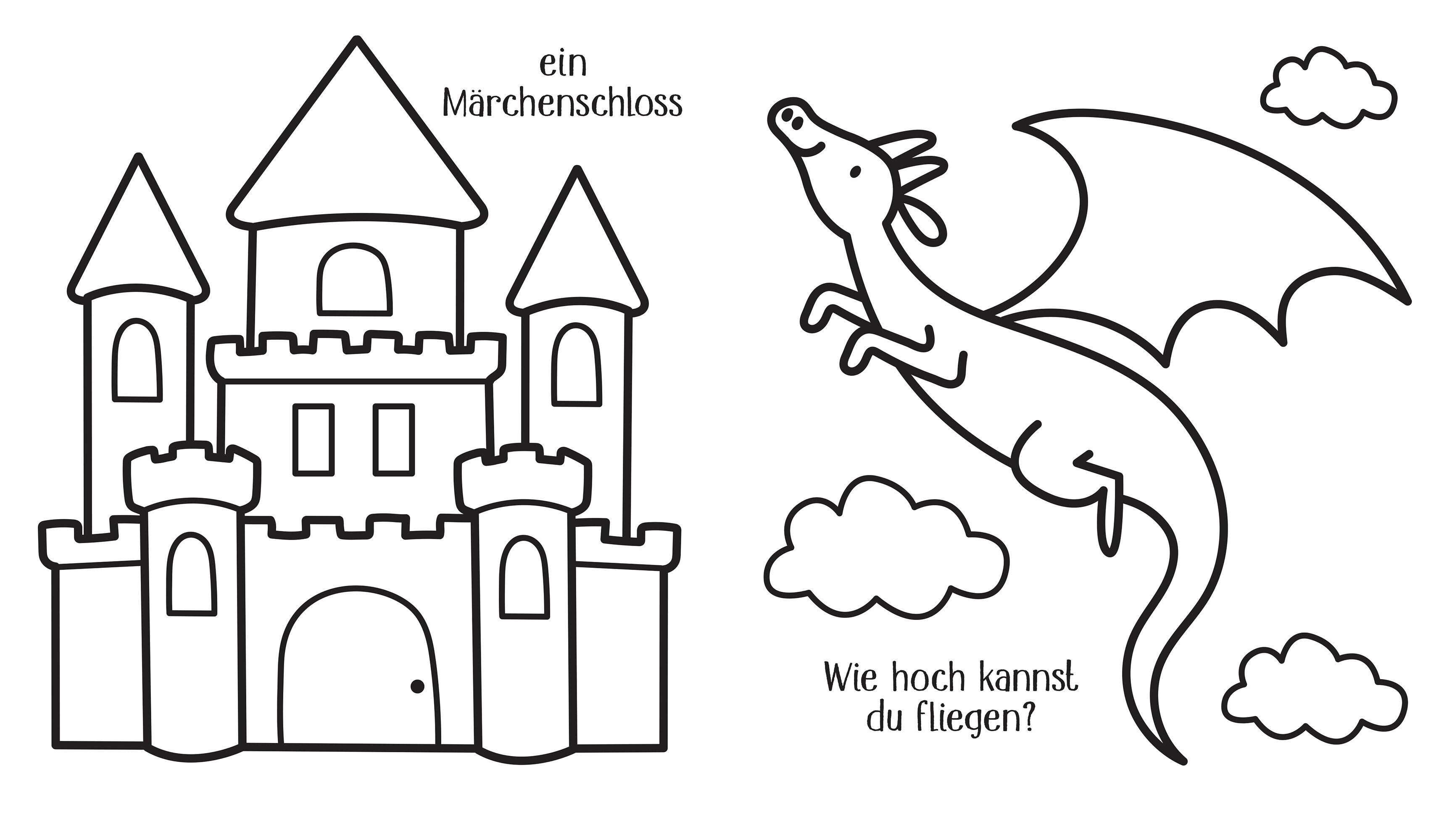 Feen, die mit Schmetterlingen spielen, verspielte Einhörner sowie Drachen, Wichtel und Meerjungfrauen. Dank breiter Konturen und einfacher Formen sind diese Malvorlagen perfekt für erste Ausmalversuche geeignet. So üben kleine Künstlerinnen und Künstler spiel...