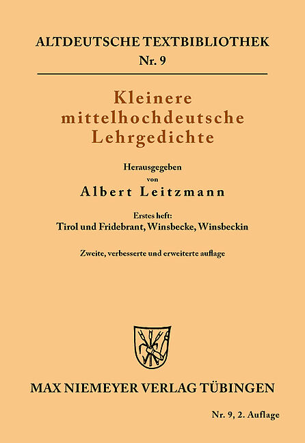Keine ausführliche Beschreibung für "Kleinere mittelhochdeutsche Lehrgedichte" verfügbar. Klappentext Die ATB ist die traditionsreichste Editionsreihe der germanistischen Mediävistik. Begründet 1881 von Hermann Paul, wurde sie von führenden Fachvertr...