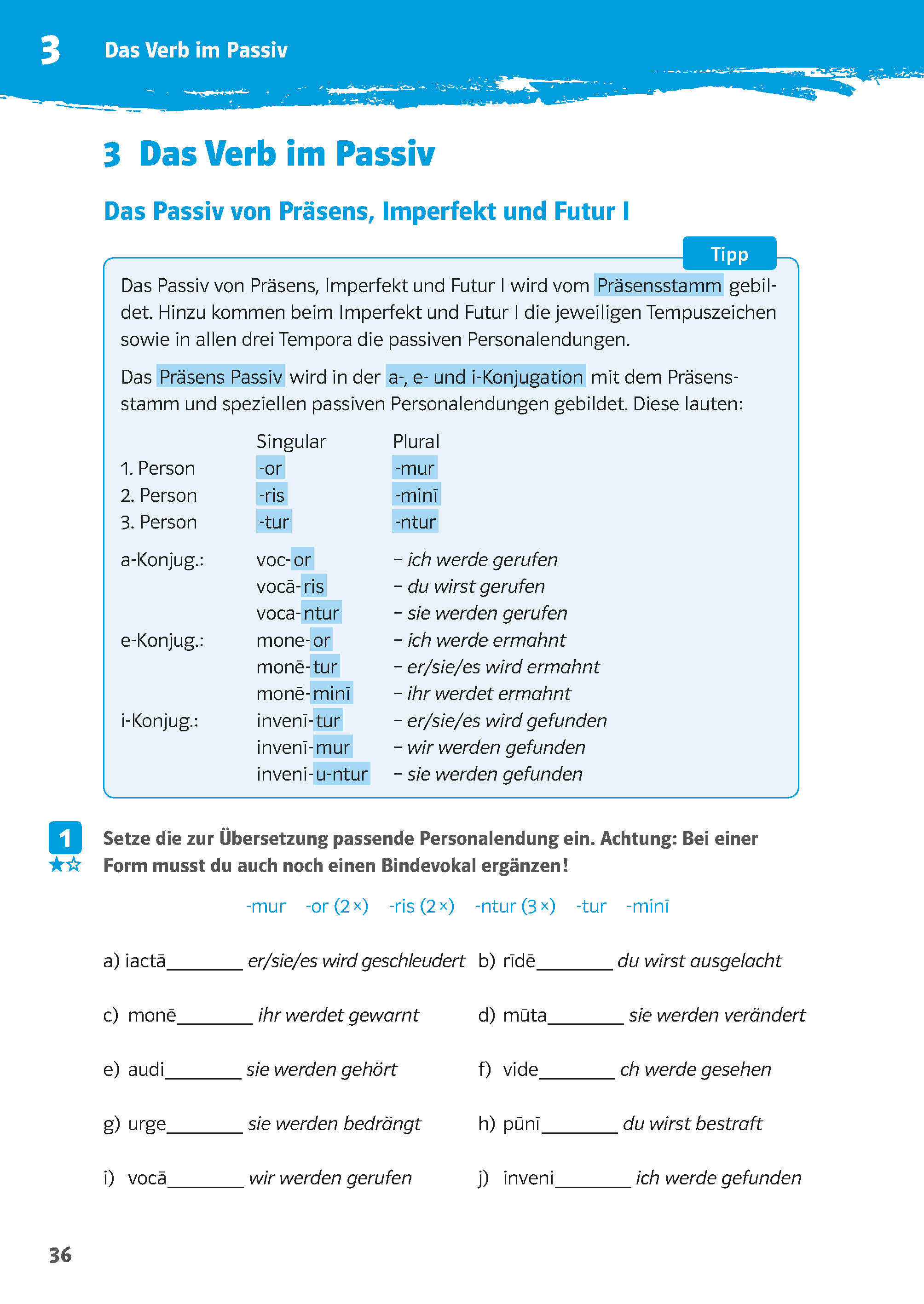Besser werden mit dem täglichen 10-Minuten-Training Viele abwechslungsreiche Übungen, die Spaß machen: Gezielt üben: 5 Konjugationsklassen, Zeitenbildung im Aktiv, Zeitenbildung im Passiv, Konjunktiv. Zwei Schwierigkeitsstufen für mehr Lernerfolg Mit Tipps un...