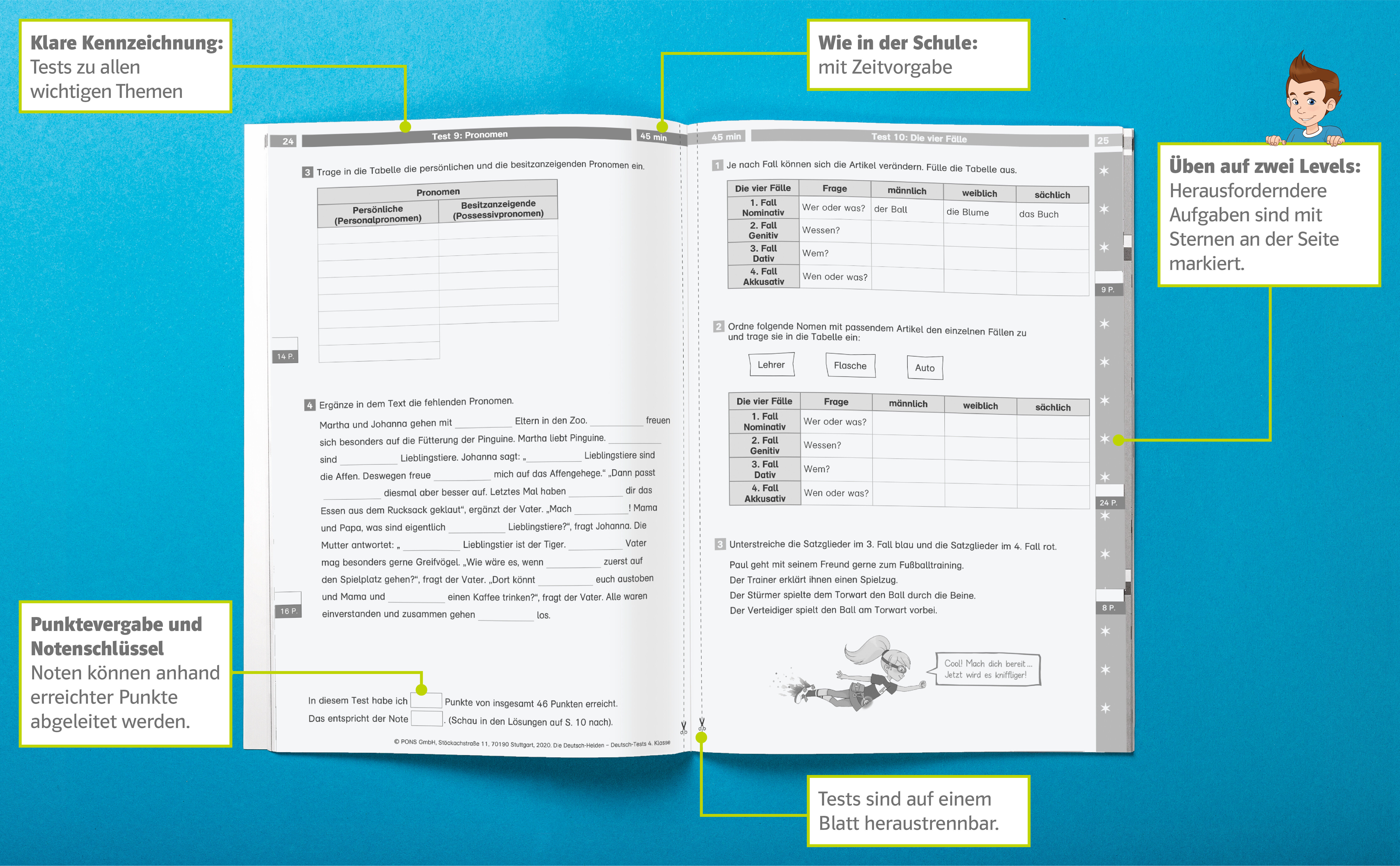 Mit diesen Tests bist du optimal vorbereitet auf Klassenarbeiten, Lernzielkontrollen, Proben bzw. Probearbeiten, Erfolgskontrollen und Schulaufgaben bzw. Schularbeiten und wirst zum Deutsch-Helden! Trainieren wie in echt: 28 Deutsch-Tests zu den relevanten Th...