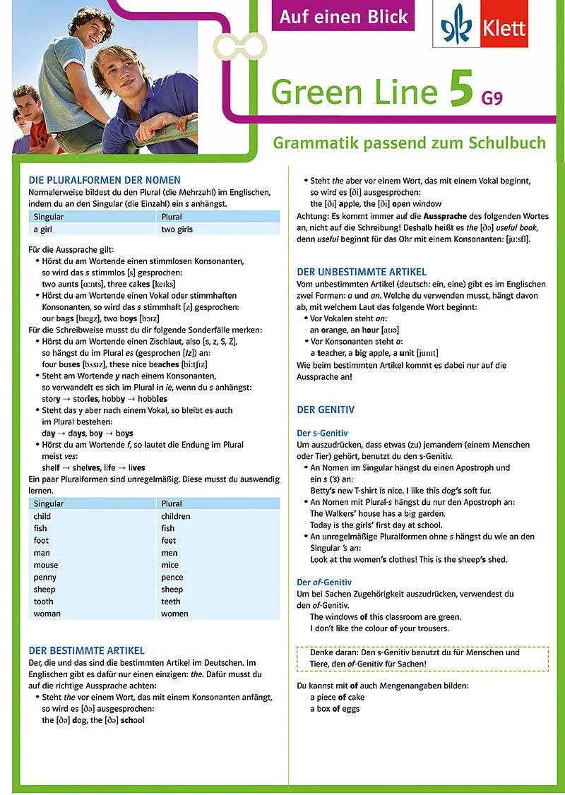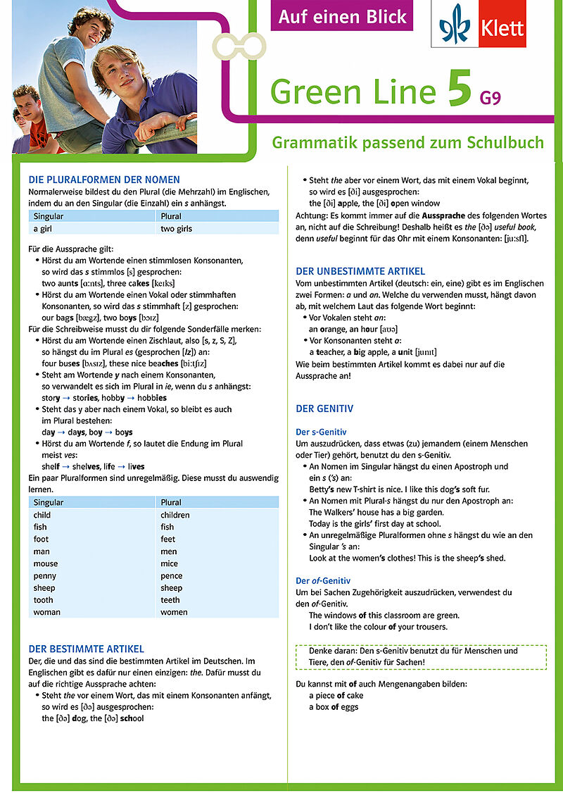 Grammatik auf einen Blick - passend zum Schulbuch Passt zum Schulbuch Green Line 5 G9, Ausgabe ab 2015, ISBN 978-3-12-854251-5 (flexibler Einband) und ISBN 978-3-12-854250-8 (fester Einband), Klasse 9 Das Erfolgsformat jetzt auch für die neue Green Line Gener...