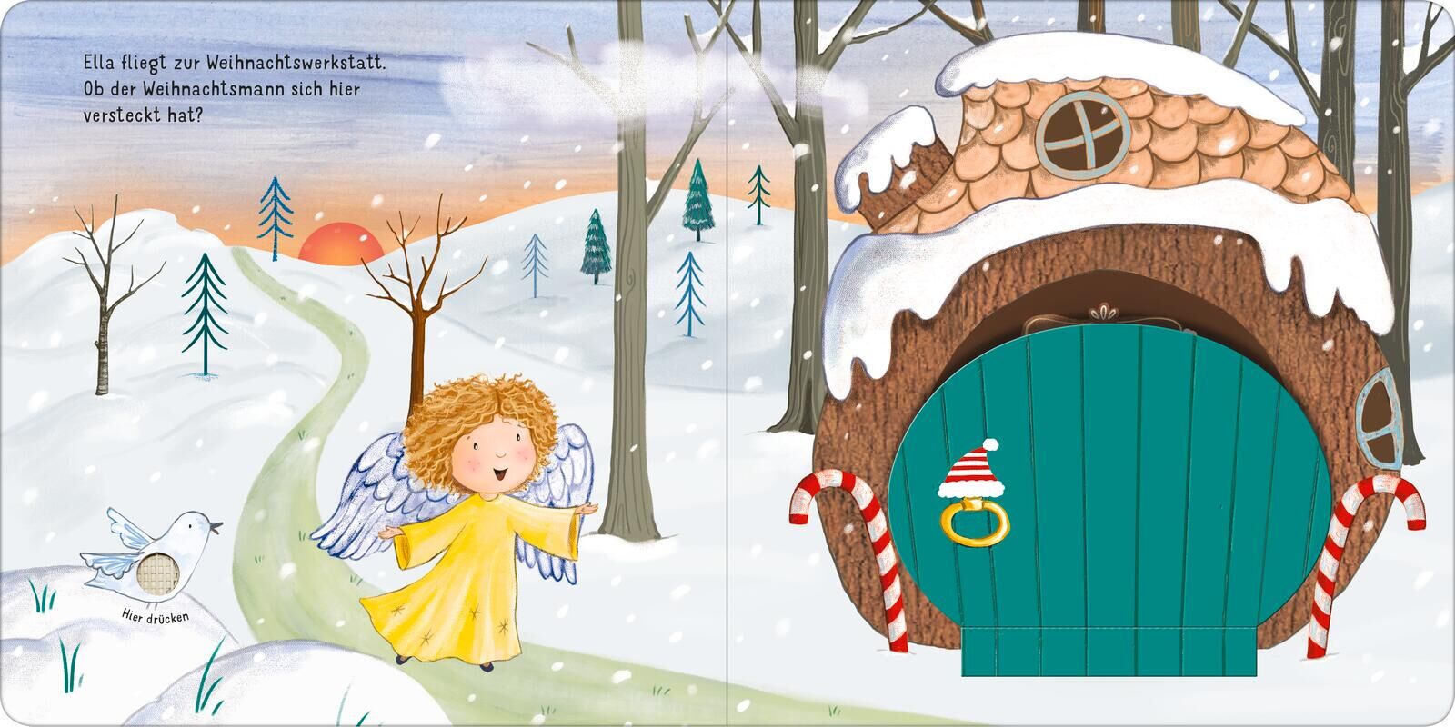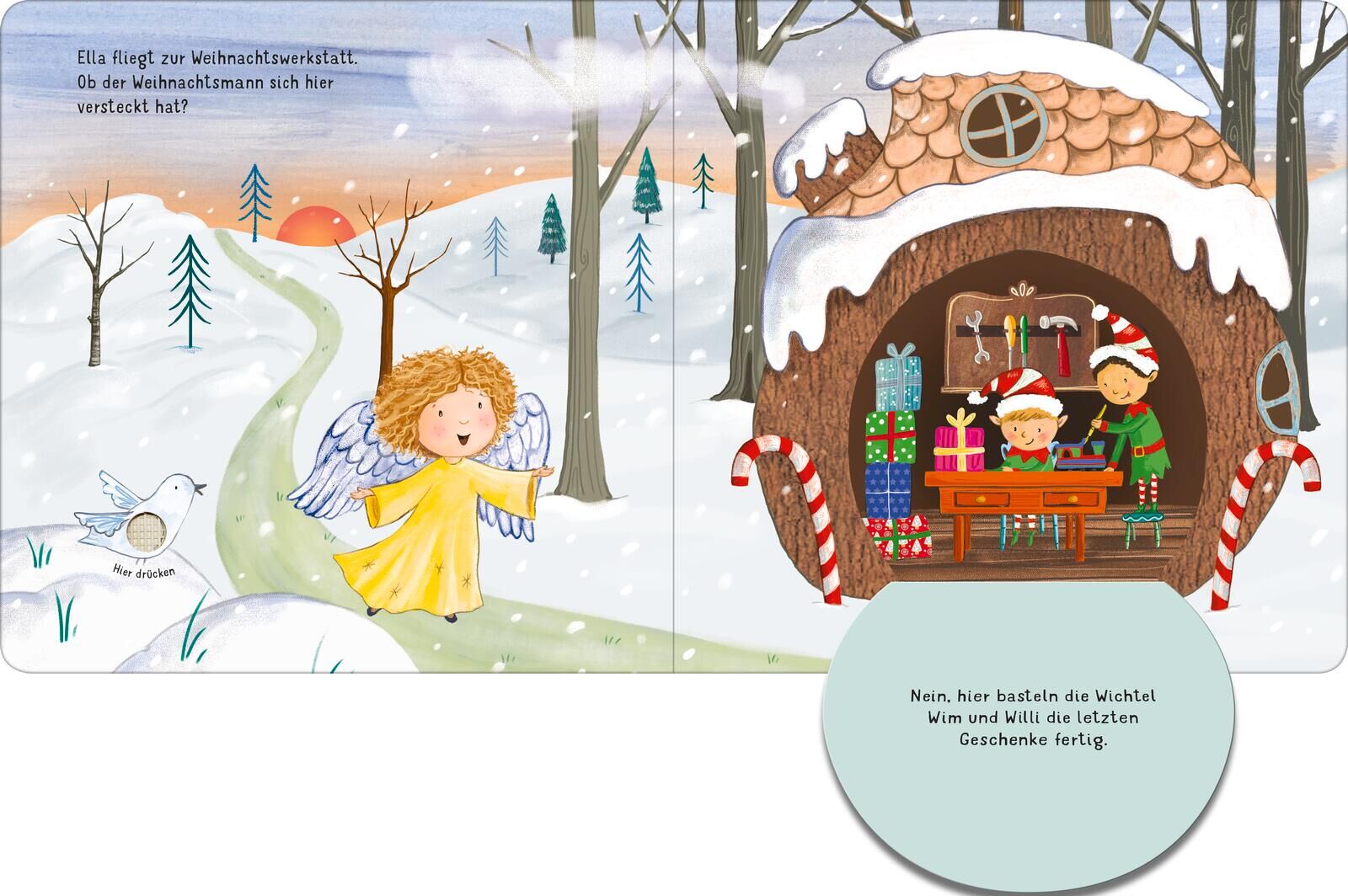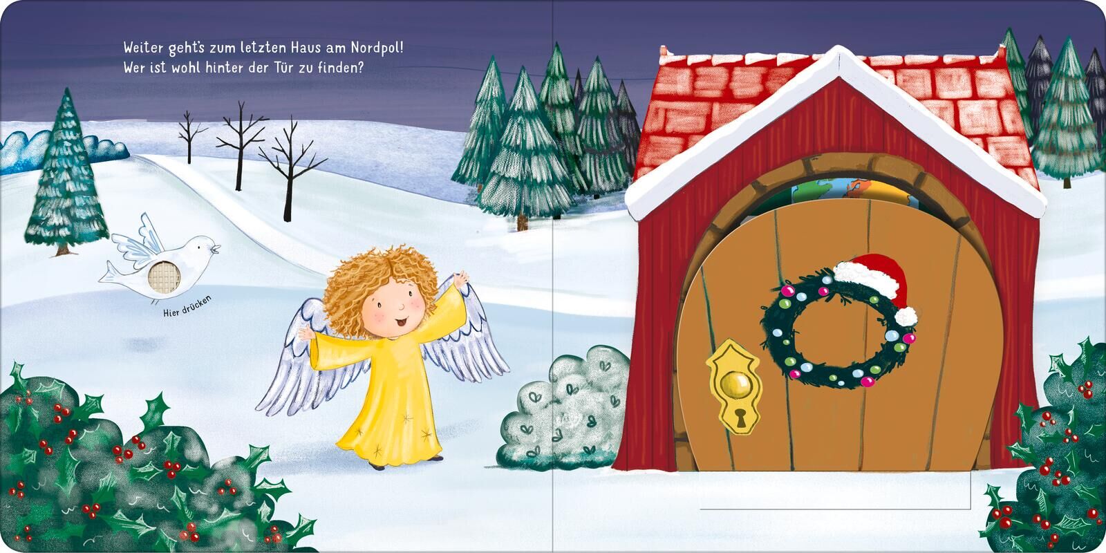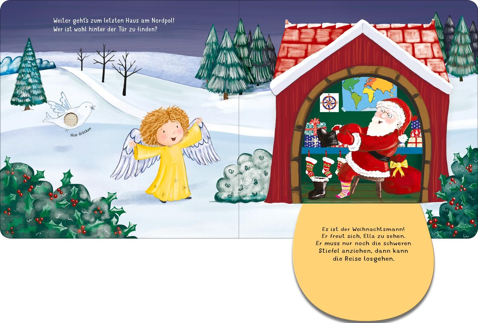 Klopf, klopf! Wer wohnt denn hier? Es ist Weihnachten. Zeit für das kleine Weihnachtsengelchen, zum Nordpol zu fliegen, um dem Weihnachtsmann zu helfen. Aber wo steckt der Weihnachtsmann bloß? Im großen Iglu? Nein, da schmücken die Eisbären gerade ihren Weihn...