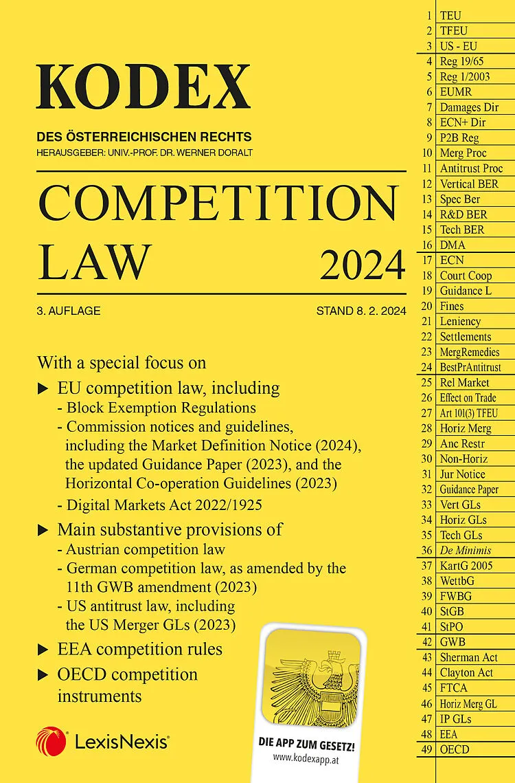 KODEX Competition Law , 3nd edition, as amended on 8 January 2024: With a special focus on EU competition law , including - Block Exemption Regulations - Commission notices and guidelines including the Market Definition Notice (2024), the updated Guidance Pap...