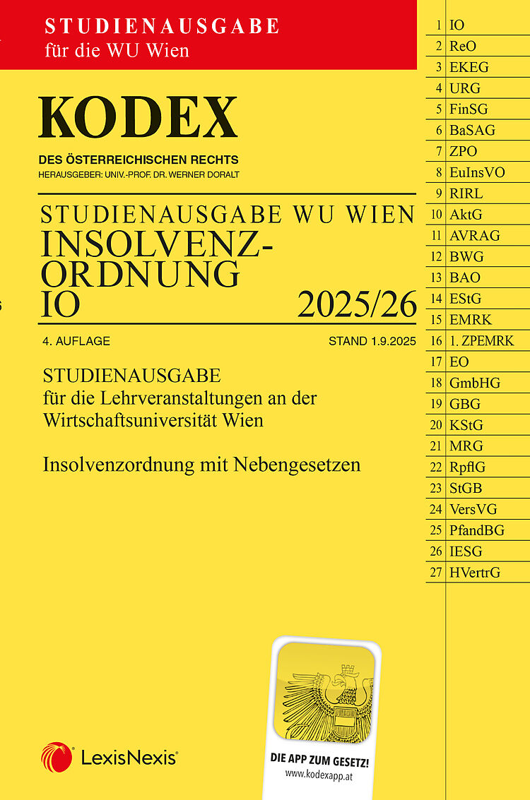 KODEX Insolvenzrecht für die WU 2025/26 , 4. Auflage, Stand 1. 9. 2025 STUDIENAUSGABE für die Lehrveranstaltungen an der Wirtschaftsuniversität Wien Insolvenzordnung mit Nebengesetzen