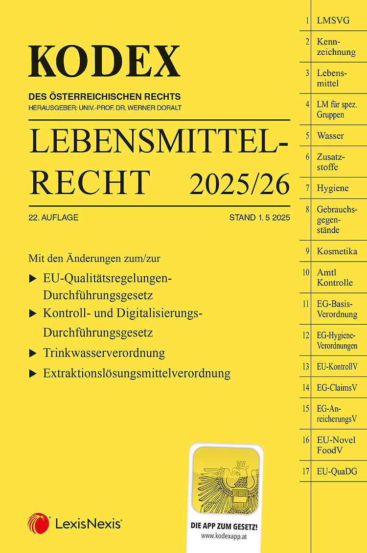 Der Kodex Lebensmittelrecht 22. Auflage mit Stand 1. 5. 2025 enthält: Mit den Änderungen zum/zur EU-Qualitätsregelungen-Durchführungsgesetz Kontroll- und Digitalisierungs-Durchführungsgesetz Trinkwasserverordnung Extraktionslösungsmittelverordnung Mit dem Kau...