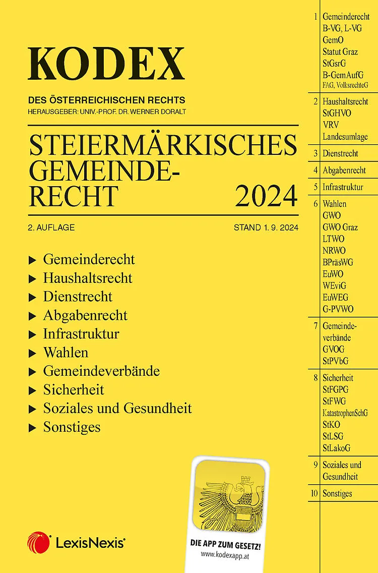 Kodex Steiermärkisches Gemeinderecht 2. Auflage mit Stand 1. 9. 2024 enthält: Gemeinderecht Haushaltsrecht Dienstrecht Abgabenrecht Infrastruktur Wahlen Gemeindeverbände Sicherheit Soziales und Gesundheit Mit dem Kauf dieses Bandes erhalten Sie Zugriff auf di...