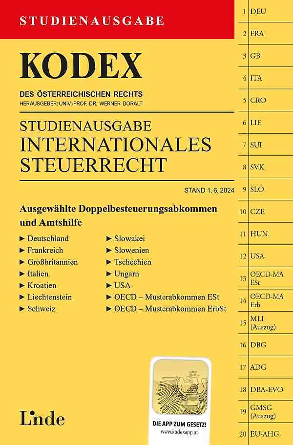 Auflage, Stand 1.6.2024 Mit der App zum Gesetz Ausgewählte Doppelbesteuerungsabkommen und Amtshilfe Deutschland, Frankreich, Großbritannien, Italien, Kroatien, Liechtenstein, Schweiz, Slowakei, Slowenien, Tschechien, Ungarn, USA, OECD Musterabkommen ESt, O...