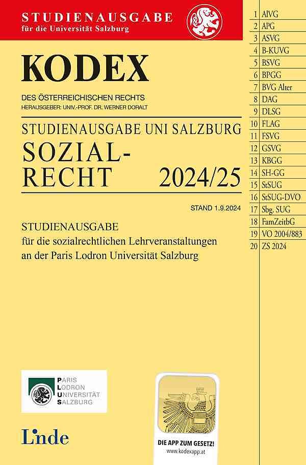 Auflage, Stand 1.9.2024 Mit der App zum Gesetz Die Studienausgabe des KODEX Sozialrecht für die sozialrechtlichen Lehrveranstaltungen an der Paris Lodron Universität Salzburg. KODEX Studienausgabe Sozialrecht 2024/25 STUDIENAUSGABE für die Universität Salz...