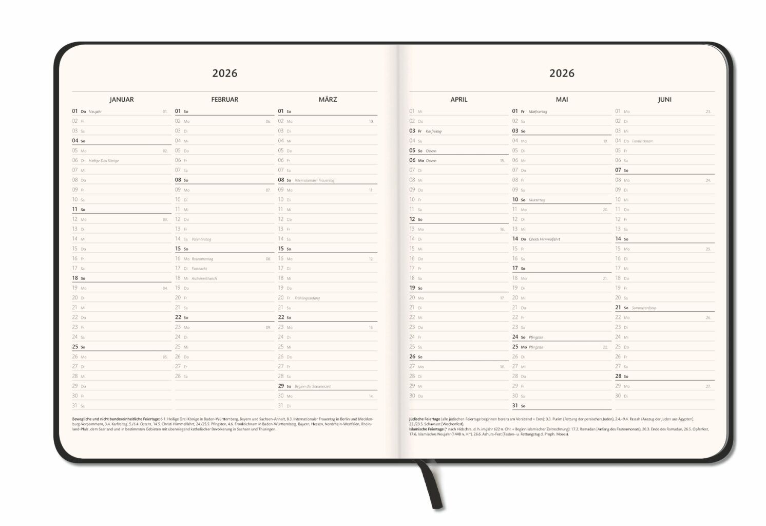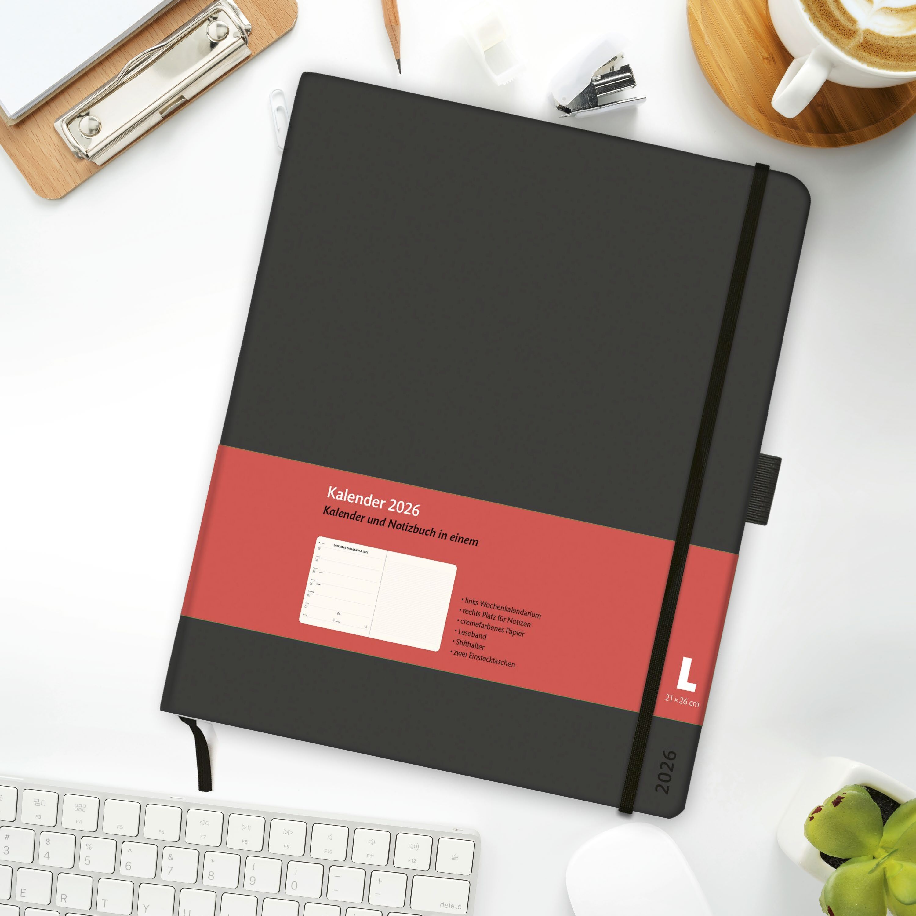 Alle Termine und Erledigungen an einem Ort: Schwarzer Taschenplaner im Format 21 x 26 cm mit To-Do-Listen, Jahresübersichten und Geburtstagskalender - Neutraler Organizer, der's in sich hat: Der Buchkalender 2026 im minimalistischen Design mit Schulferien, R...