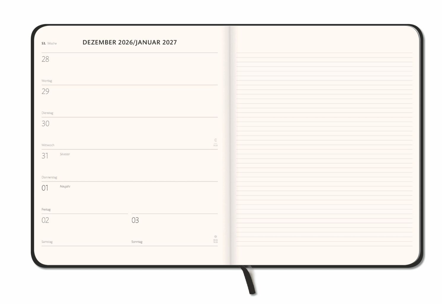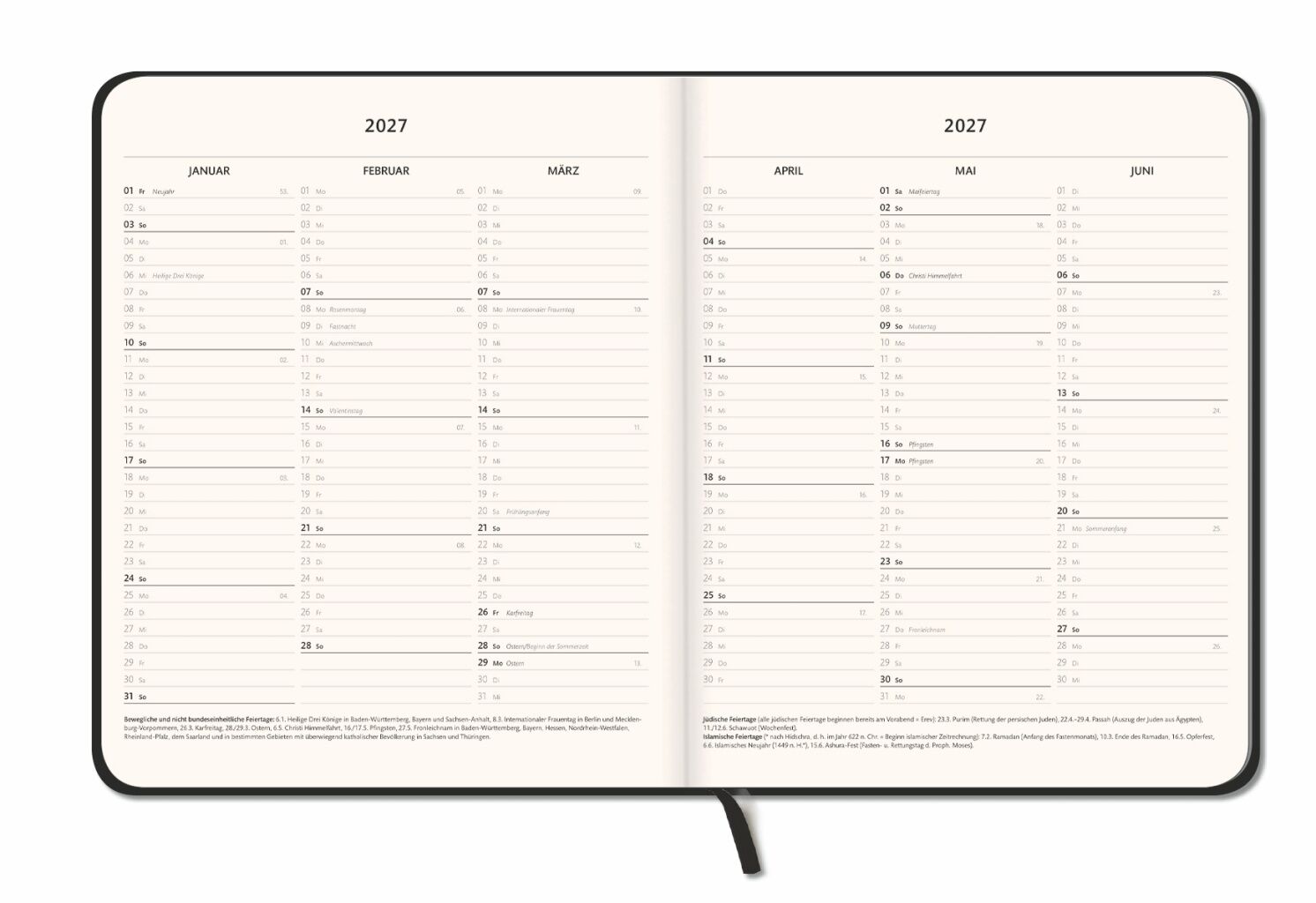 Alle Termine und Erledigungen an einem Ort: Schwarzer Taschenplaner im Format 21 x 26 cm mit To-Do-Listen, Jahresübersichten und Geburtstagskalender - Neutraler Organizer, der's in sich hat: Der Buchkalender 2027 im minimalistischen Design mit Schulferien, R...