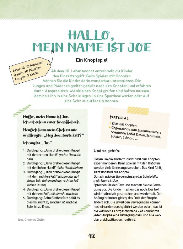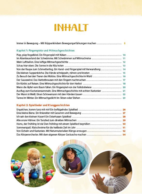 Auf die Plätze, fertig, los! Die Schmusetier-Olympiade ist eröffnet! Oder wie wäre es mit einer Bobbycar-Ralley? Die 7 Bewegungsideen in dieser Sammlung sind die optimale Gelegenheit, dem natürlichen Bewegungsdrang Ihrer Krippenkinder kreativ und spielerisch n...