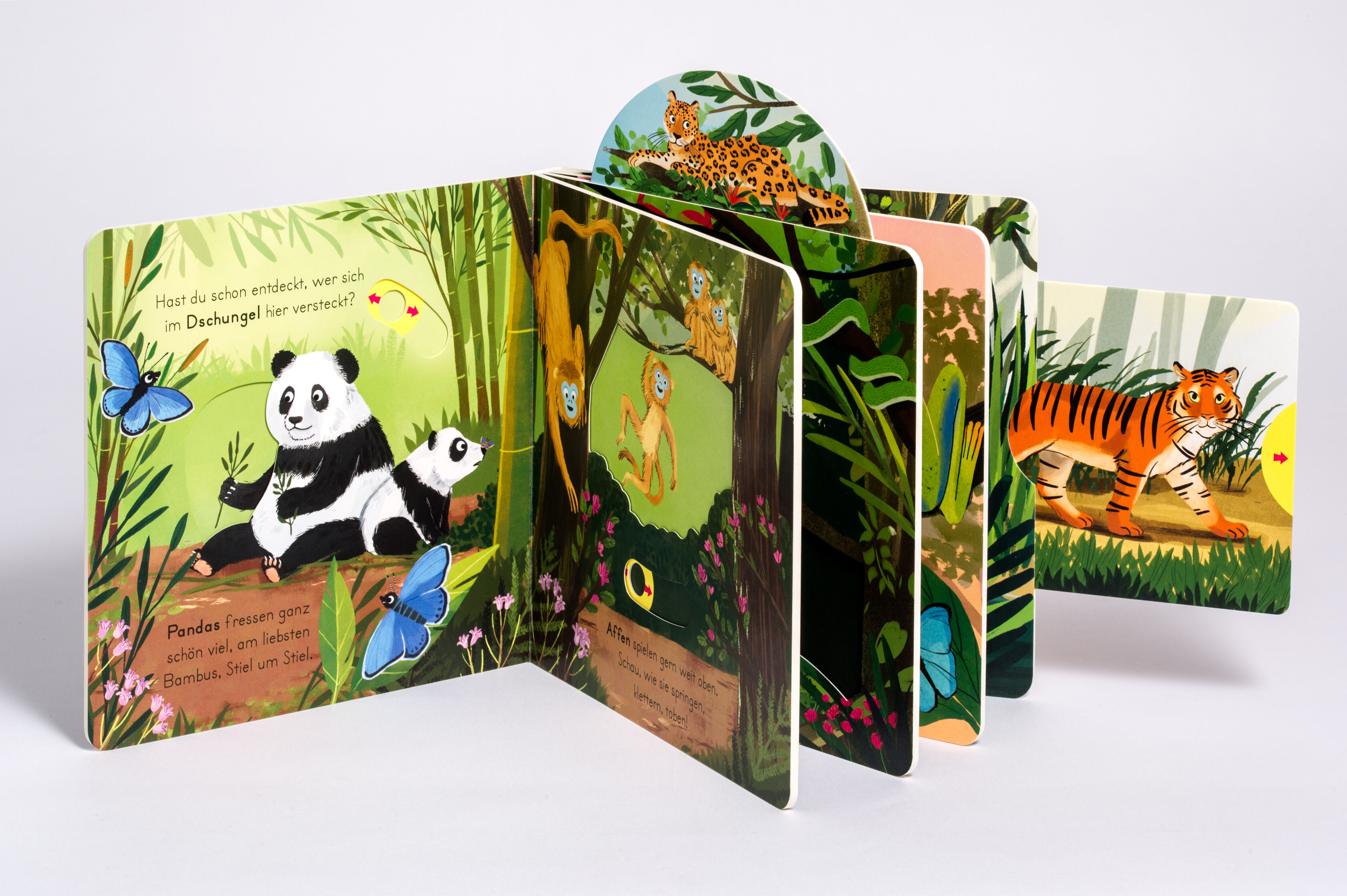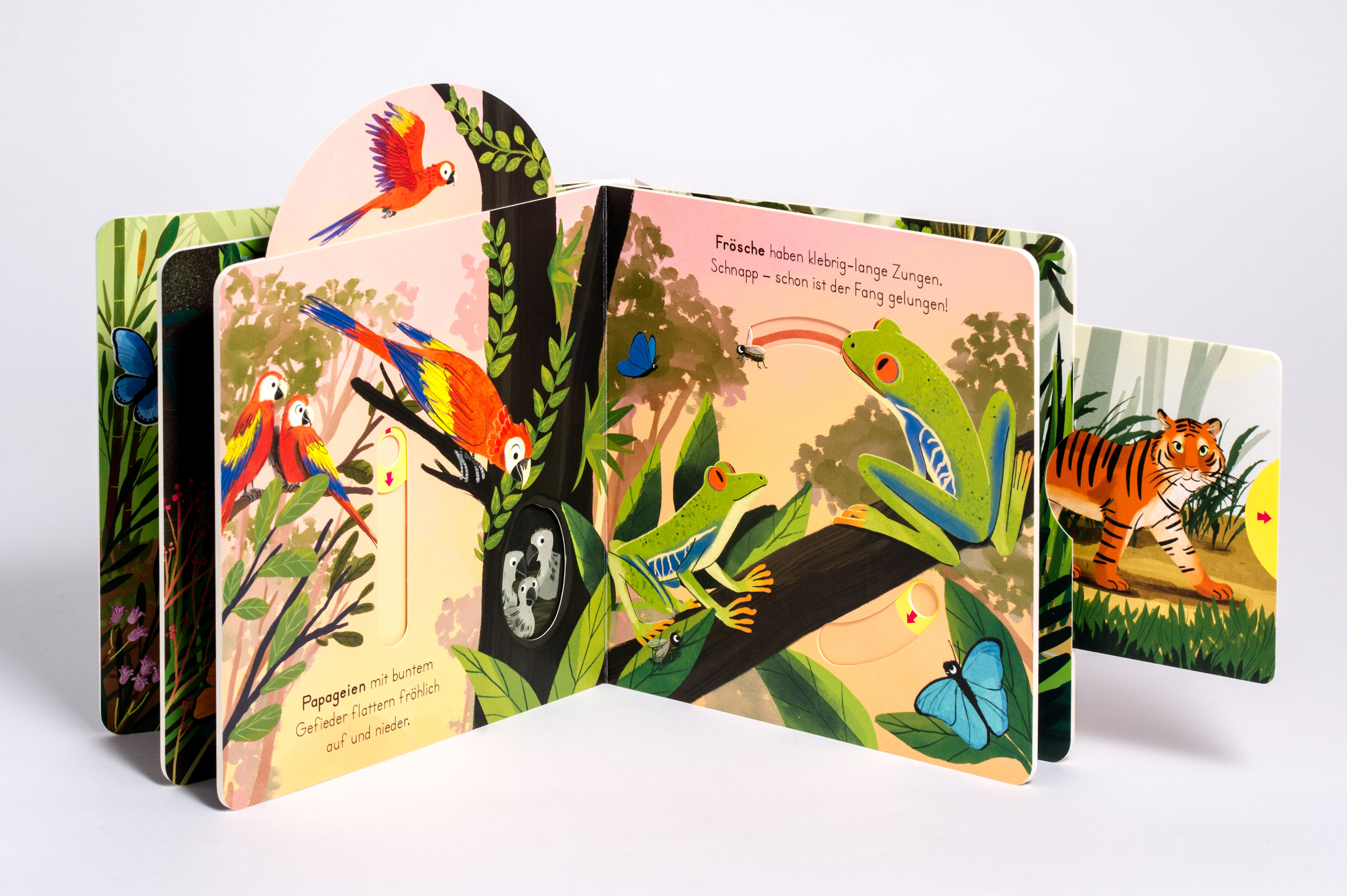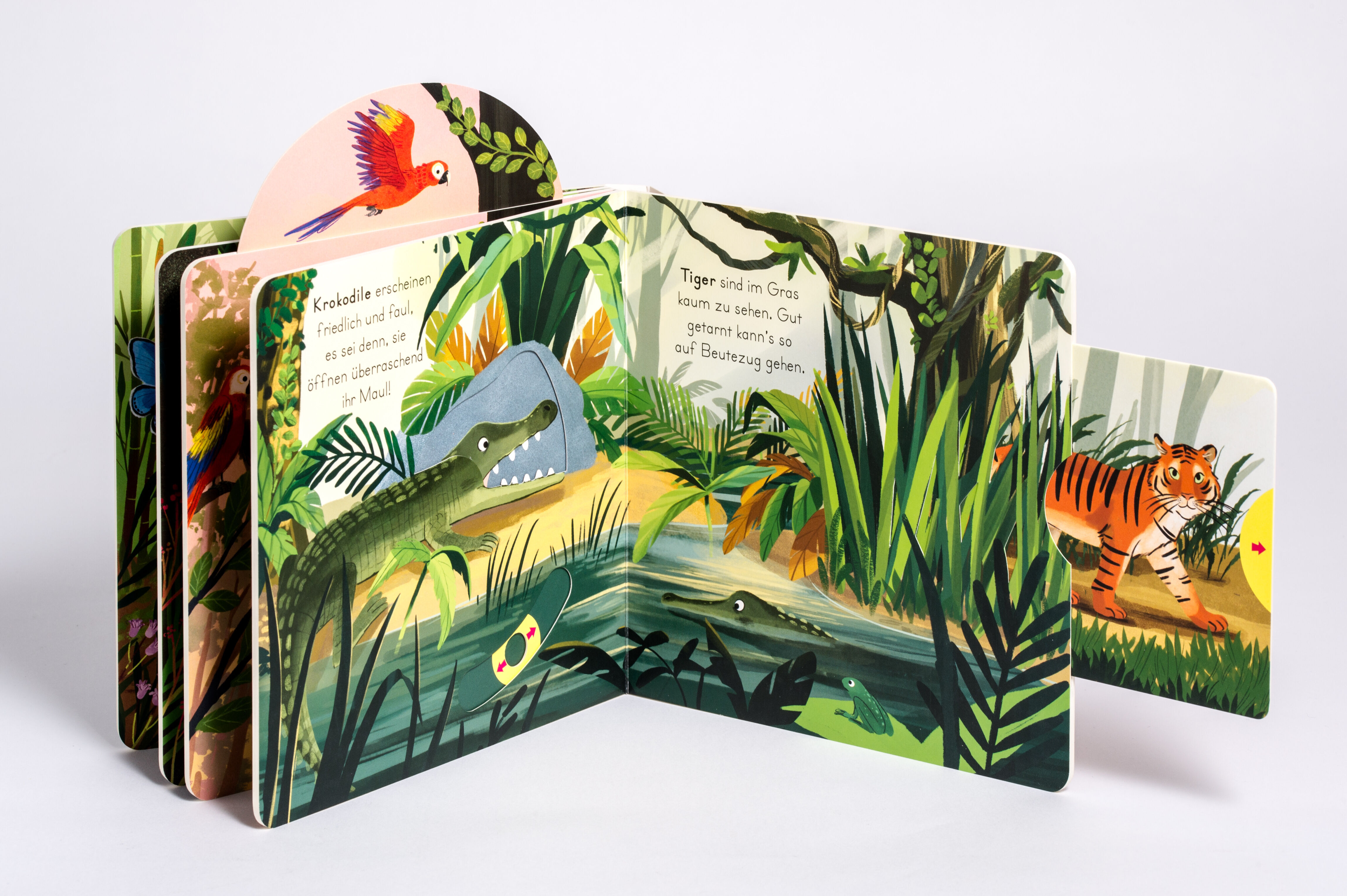 Extraviel Spielspaß und erstes Sachwissen in einem Buch! Pandas, Krokodile, Papageien oder Faultiere im Dschungel gibt es viele Tiere zu entdecken! Mit nur einer Handbewegung kann das Kind die Tiere klettern, fressen oder fliegen lassen. So wird auf ganz spiel...