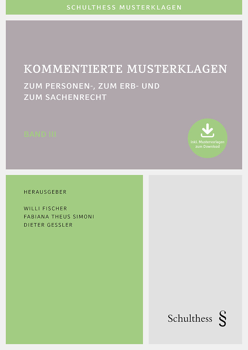 Die 100 kommentierten Musterklageschriften, auf fünf Bände aufgeteilt, behandeln häufig vorkommende oder wirtschaftlich bedeutsame Klagen aus dem gesamten Privatrecht, inklusive vorsorglicher Massnahmen. Band III enthält Klagen aus den Bereichen Persönlichkeit...