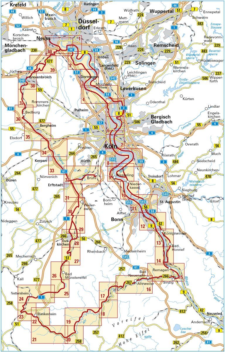 Kompakt-Spiralo BVA 3-Flüsse-Tour Radrundtour an Rhein, Ahr und Erft Radwanderkarte 1:50.000