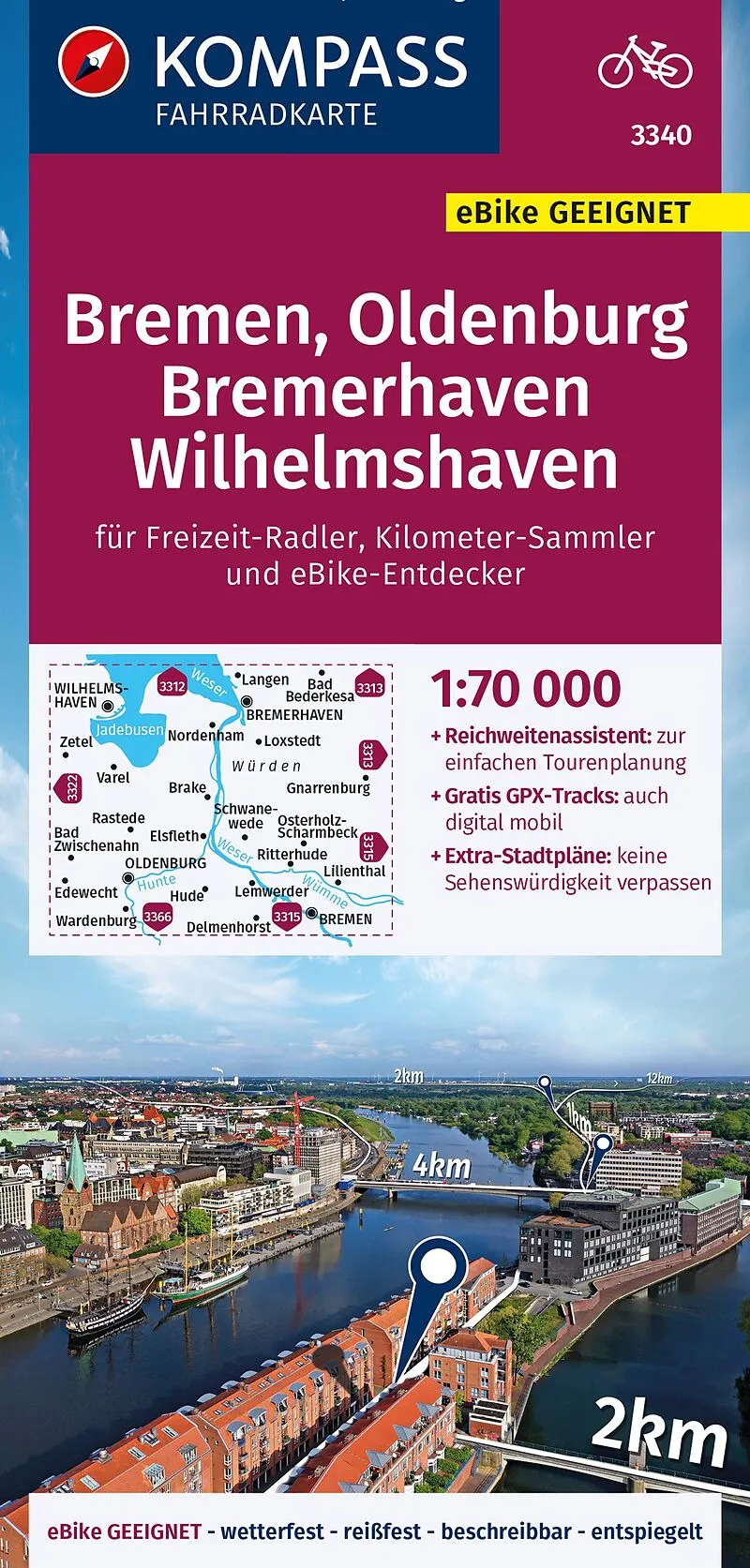 Die Fahrradkarte Bremen, Oldenburg, Bremerhaven, Wilhelmshaven von Kompass im Maßstab 1:70.000 bietet einen guten Mix aus Detailgrad und Abdeckung der Region. Sie beinhaltet alles, was man für eine gute Planung und Orientierung einer Fahrradtour benötigt. Das...