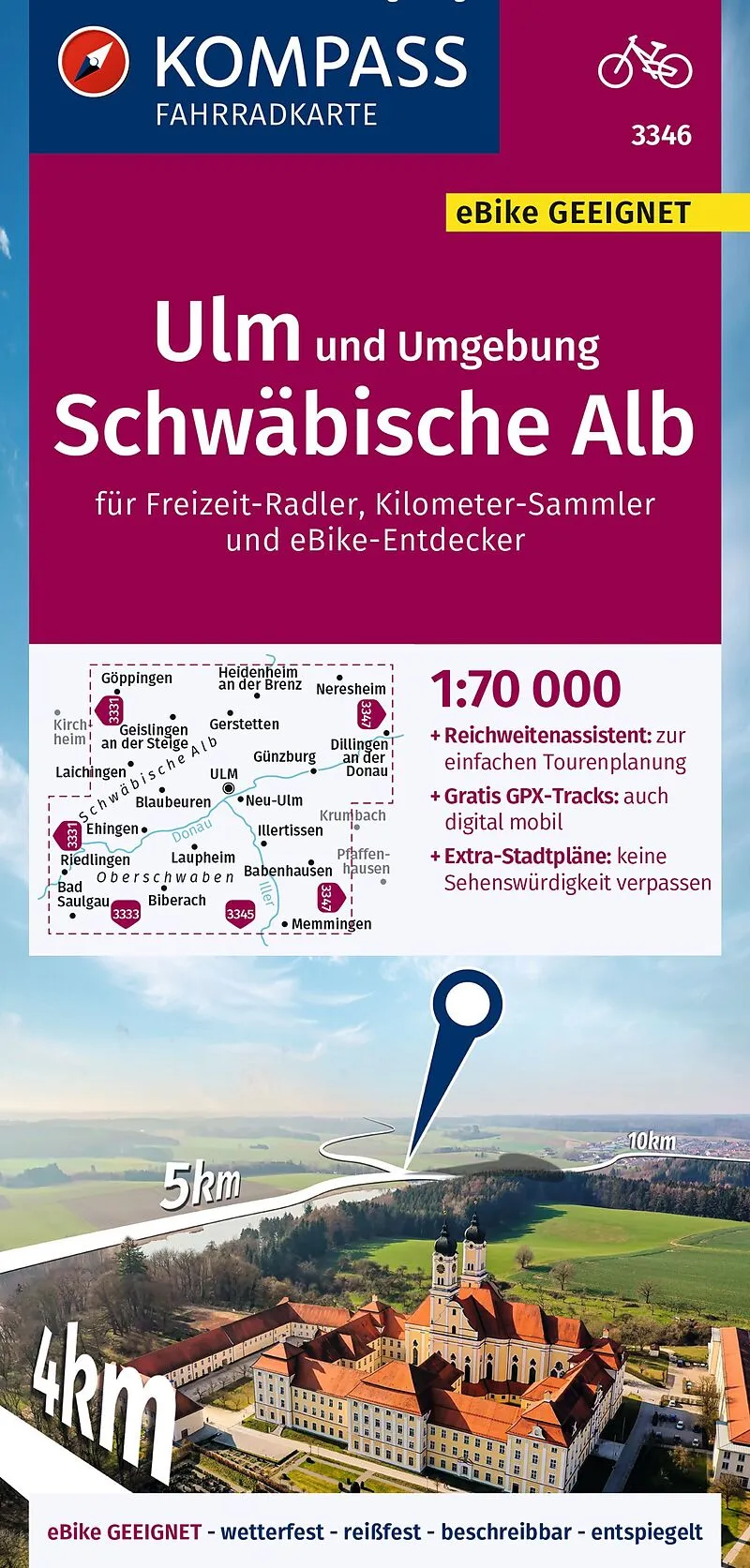 Die Fahrradkarte Ulm und Umgebung, Schwäbische Alb von Kompass im Maßstab 1:70.000 bietet einen guten Mix aus Detailgrad und Abdeckung der Region. Sie beinhaltet alles, was man für eine gute Planung und Orientierung einer Fahrradtour benötigt. Das reiß- und w...