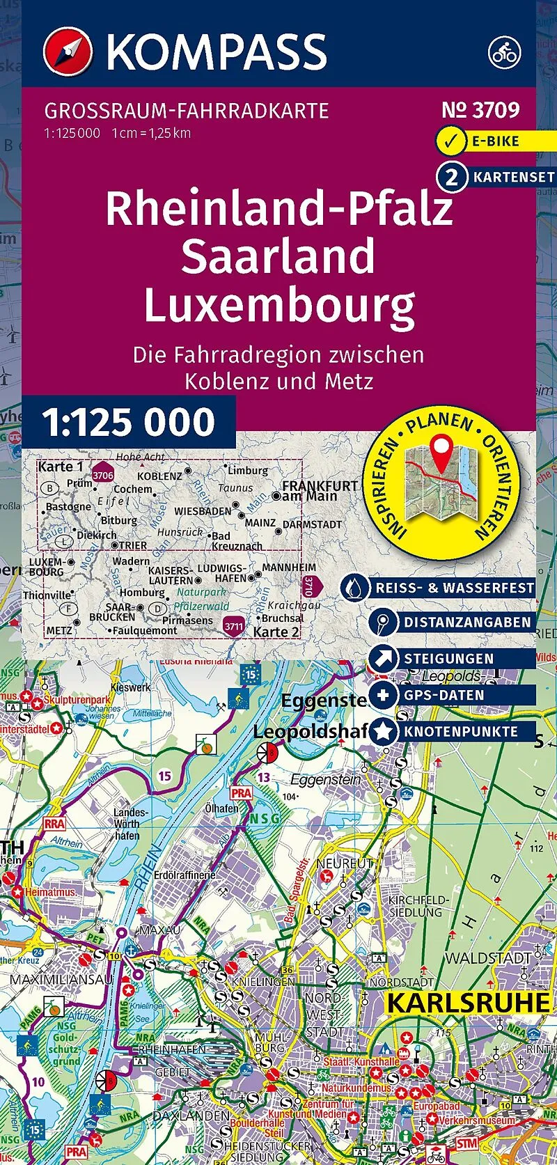 Alles in einem Kartenset - 2 Karten im Maßstab 1:125.000. Deutlich markierte Radfernwege, Haupt- und Nebenradwege inklusive einer übersichtlichen Auflistung aller enthaltenen beschilderten Routen. Darüber hinaus sind die offiziellen Knotenpunkte des Radwegene...