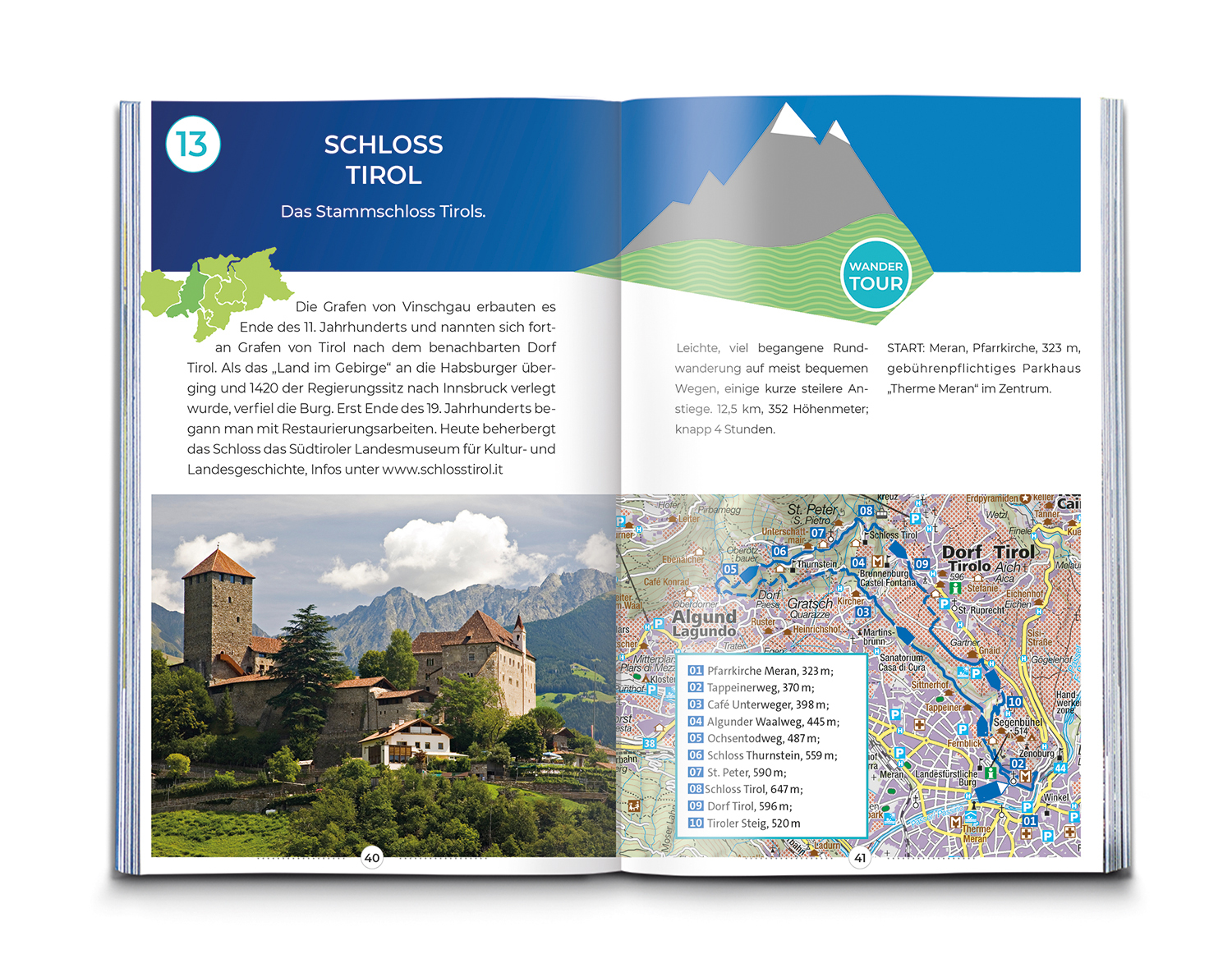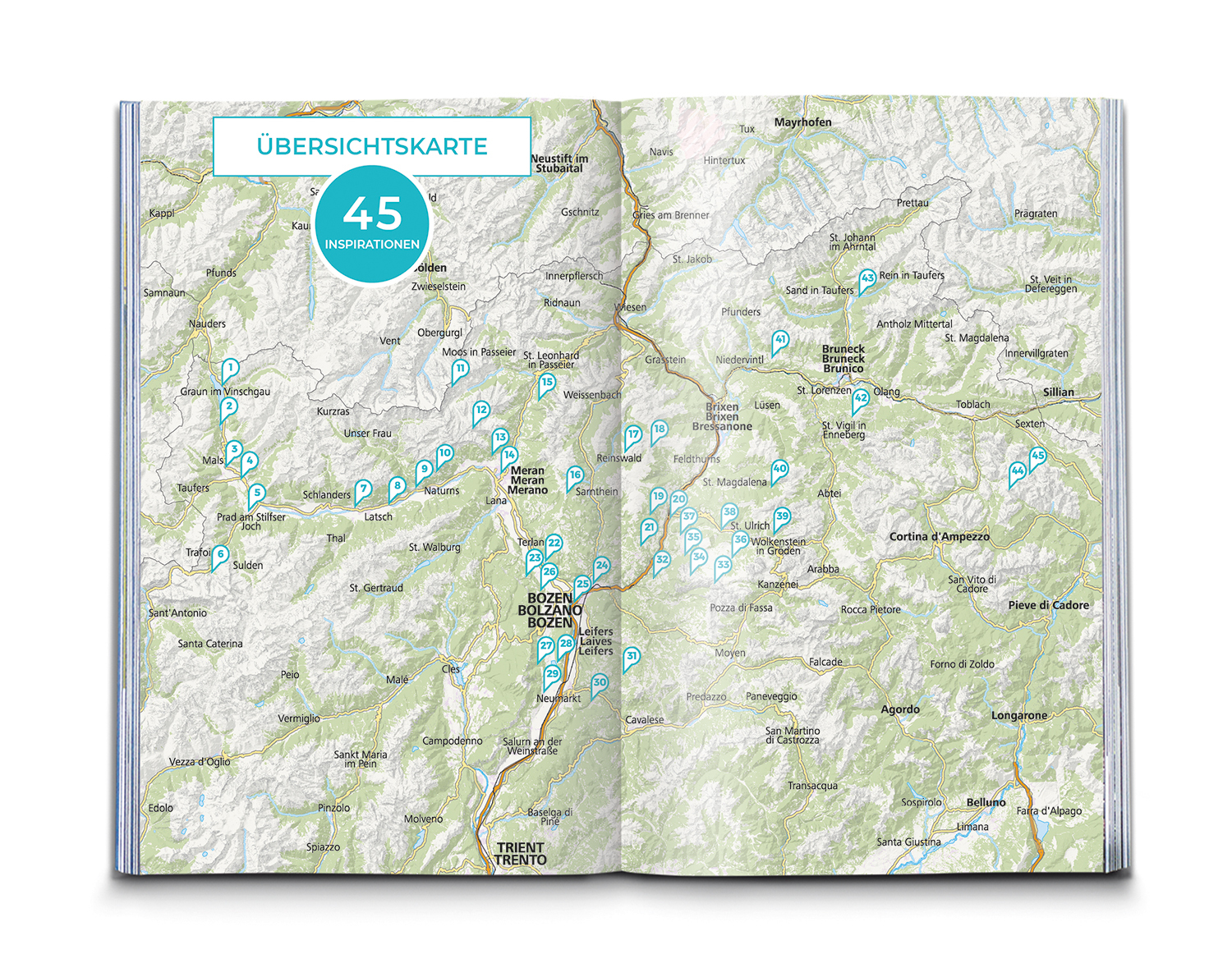Besser vorher schon wissen, was es zu sehen gibt : Alle 45 Natur- und Wanderhighlights findest du im kompakten Reiseführer Inspiration Südtirol. Wasserfälle, einsame Buchten, atemberaubende Aussichten oder einmalige Bergdörfer. Wer will solche Geheim-Tipps ni...