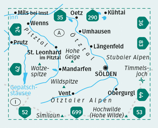 KOMPASS Wanderkarte 43 Ötztaler Alpen, Ötztal, Pitztal 1:50.000
