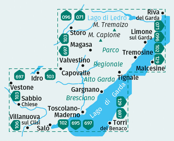 Wanderkarte Parco Alto Garda, Bresciano, Limone sul Garda, Tremosine, Tignale, Salò, Gargnano, Toscolano Maderno, Valvestino: Die Karte für Wandern, Fahrradfahren und viele weitere Aktivitäten in der Natur Kompass Wanderkarten sind einfach zu lesen und beinha...