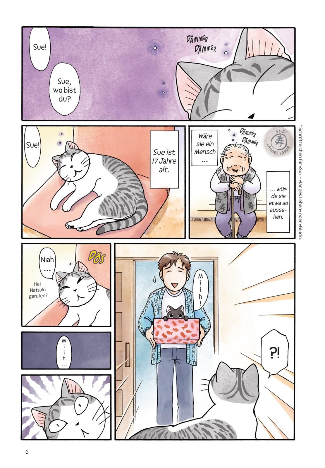 Neue Katzenabenteuer von »Kleine Katze Chi«-Autorin Konami Kanata Sue ist schon eine etwas betagte Hauskatze, die bei ihren Besitzern ein rundum glückliches und friedliches Katzenleben führt bis der aufgeweckte junge Kater Tai-chan einzieht. Der schwarze Wirb...