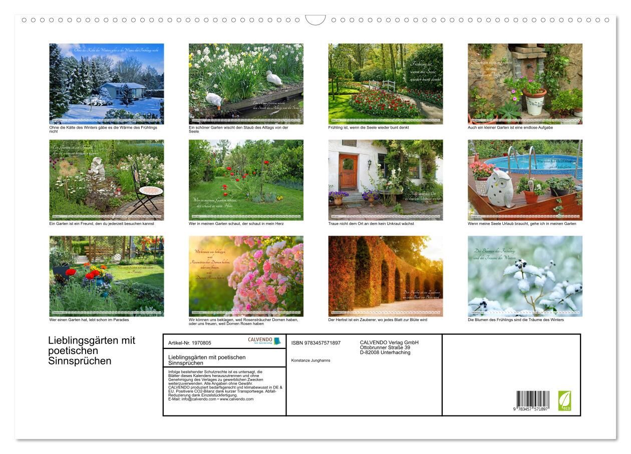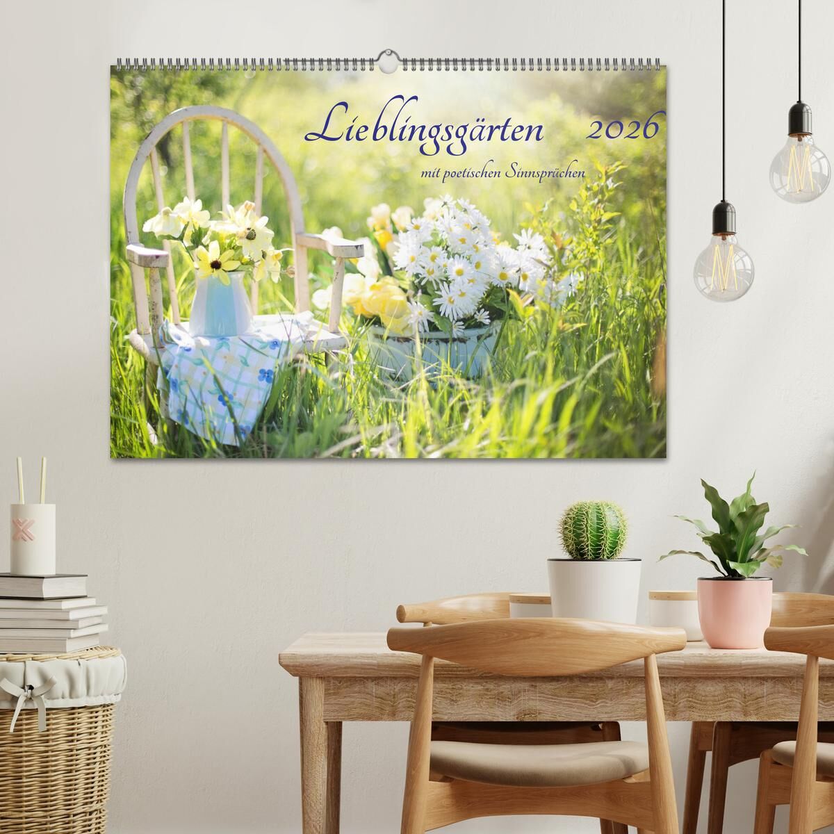 Lieblingsgärten mit poetischen Sinnsprüchen (Wandkalender 2026 DIN A2 quer), CALVENDO Monatskalender