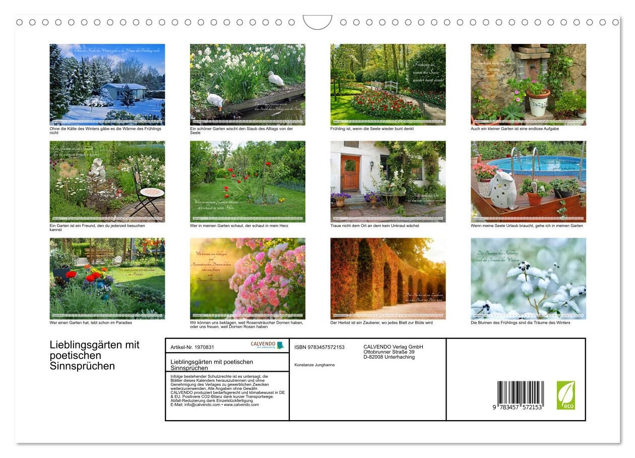 Ob Frühling, Sommer, Herbst oder Winter: Der Garten erstrahlt zu jeder Jahreszeit in einem völlig neuen Glanz und hält stets etwas ganz Besonderes für uns bereit. Ein toller Kalender mit romantischen Gartenbildern umrahmt von sinnlicher Poesie. Genießen Sie 12...
