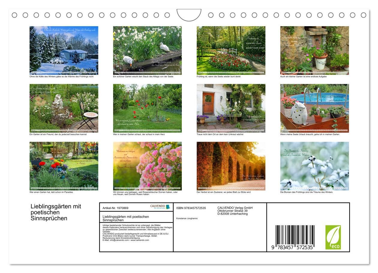 Lieblingsgärten mit poetischen Sinnsprüchen (Wandkalender 2026 DIN A4 quer), CALVENDO Monatskalender