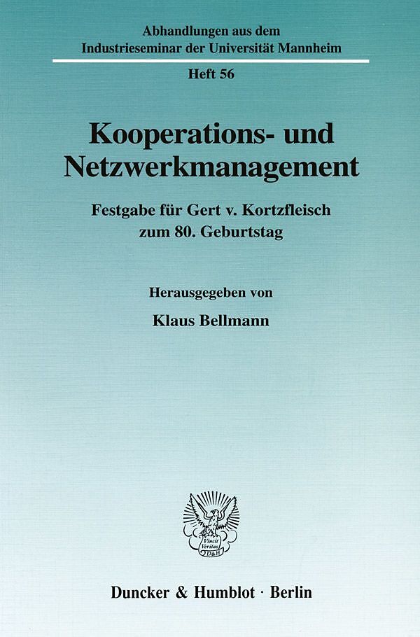 Die Beiträge in den fünf Festgaben für Gert v. Kortzfleisch, emeritierter Ordinarius für Betriebswirtschaftslehre an der Universität Mannheim, belegen, daß die wissenschaftlichen Anregungen, leitenden Ansätze und visionären Sichten von seinen Schülern und dere...Die Beiträge in den fünf Festgaben für Gert v. Kortzfleisch, emeritierter Ordinarius für Betriebswirtschaftslehre an der Universität Mannheim, belegen, daß die wissenschaftlichen Anregungen, leitenden Ansätze und visionären Sichten von seinen Schülern und deren Schülern fortentwickelt und in aktuelle Forschungsfelder hineingetragen werden. Dies betrifft insbesondere systemisches Denken, das dem Jubilar ein nachhaltiges Anliegen ist. Die erste Festschrift reflektiert mit "Planung und Rechnungswesen in der Betriebswirtschaftslehre" das frühe Forschungsinteresse des akademischen Lehrers. Der zweite Sammelband "Technologie- und Innovationsmanagement" fundiert systemtheoretisch die Gestaltung technologischer Systeme und das Management betrieblicher Innovationen. Die dritte und vierte Festschrift dokumentieren mit "Systemmanagement und Managementsysteme" sowie "Herausforderung Umweltmanagement" die Vertiefung der systemtheoretischen Forschung und deren Öffnung zu einer holistischen Sicht. Vernetzte Prozesse und systemische Ansätze sind die Verbindungselemente zum Wirkungsfeld des Jubilars im fünften Sammelwerk "Kooperations- und Netzwerkmanagement" mit Beiträgen zur Gestaltung und zum Management interorganisationaler Gebilde in der Sicht von Theorie und Praxis. Erich Zahn analysiert interorganisationales Lernen in Allianzen im Spannungsfeld von Kooperation und Konkurrenz. Den Bedeutungswandel von Strategie in Produktionsnetzwerken thematisiert Klaus Bellmann. Für das Handeln mit Netzwerkgütern in der New Economy entwickelt Udo Mildenberger eine theoriegeleitete Erklärung. Peter Milling und Andreas Größler leiten simulativ Gestaltungsprinzipien für Wertschöpfungsketten in Logistiknetzwerken her. Am Beispiel eines Logistikdienstleisters entfalten Egon Jehle und Frank Stüllenberg eine Controllingkonzeption für unternehmensübergreifende Kooperationen. Bernd Kaluza und Thorsten Blecker entwickeln ein Konzept für die Produktionsplanung und -steuerung in der Unternehmung ohne Grenzen. Hermann Krallmann und Sahin Albayrak untersuchen das Anwendungspotential von Multiagentensystemen zur Steuerung holonischer Fertigungsstrukturen. Joachim Niedereichholz analysiert den Einfluß von Netzwerkexternalitäten auf die Gestaltung offener Unternehmensverbände. Am Beispiel von Supply Chain Management diskutiert Claus E. Heinrich die unternehmensübergreifende Integration als Strategie. Angesichts hoher Marktdynamik fordert Claus W. Gerberich die Orientierung von Planungsaktivitäten an den Halbwertzeiten erfolgskritischer Größen. Joachim Tako untersucht die Relevanz von Management-Informationssystemen auf Basis der Data-Warehouse-Technik für die Qualität von Entscheidungen. Über Erfahrungen bei der multinationalen Kooperation zur Implementierung eines weltweit einheitlichen Informationssystems für ein globales Unternehmen berichtet Cornelia Lind. Im Kontext der Privatisierung von Flughäfen ergründen Alan Hippe und Daniel Stelter Netzwerkeffekte in der Flughafenbranche.