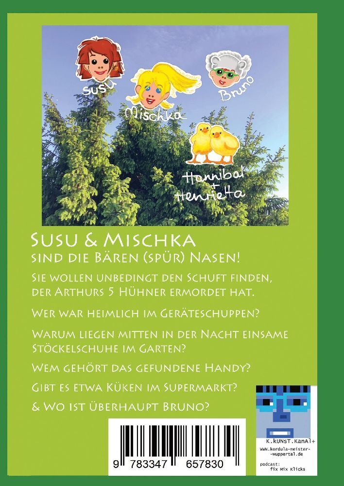 Das Mädchendetektivbüro "Die Bären(spür)Nasen" hat einen neuen Fall. Susu und Mischka, die schlauen Ermittlerinnen wollen unbedingt herausfinden, wer fünf von Arthurs Hühnern ermordet hat. So eine Gemeinheit! Und dann wird auch noch Susus mittelgroß-kleiner Br...