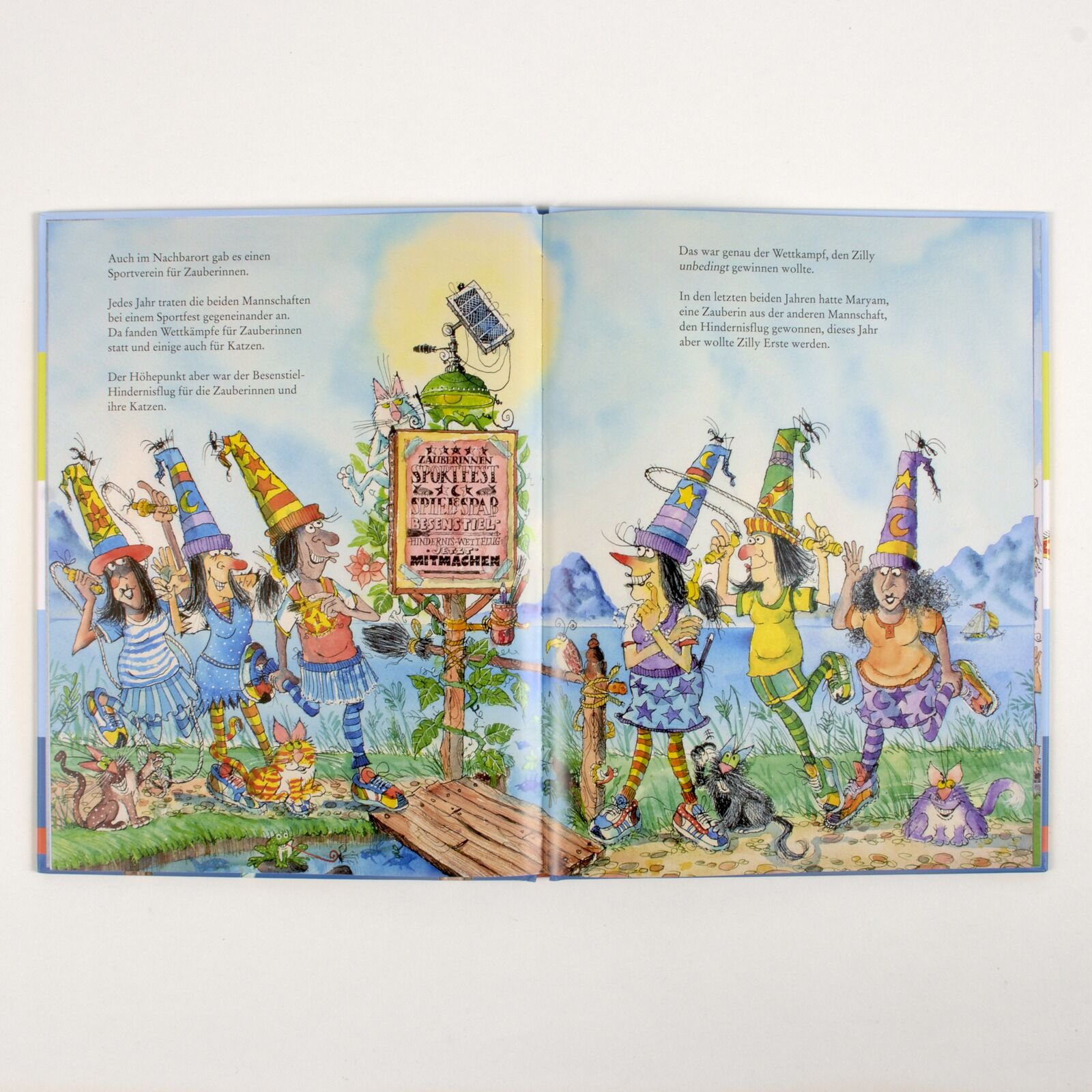 Zilly und ihr Kater Zingaro treten an bei dem großen Sportfest der Zauberinnen: Hochsprung, dreibeiniges Wettrennen, Eierlauf und Katzen-Wettklettern gehören zu den Disziplinen. Die gefürchtetste aller Disziplinen ist der Besenstiel-Hindernisflug, den Zilly di...