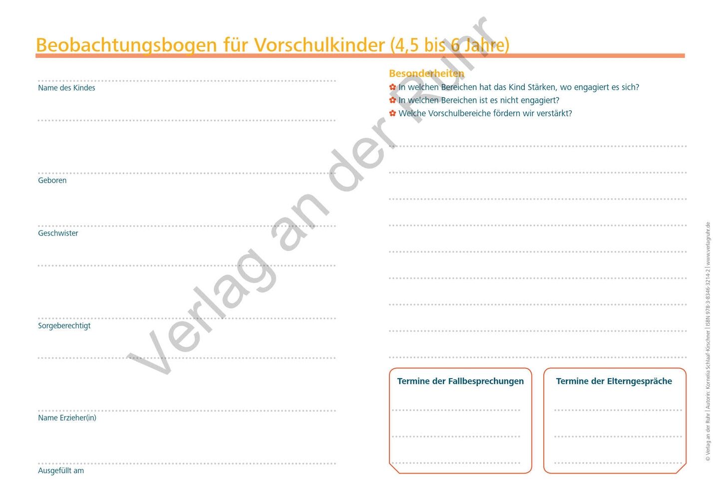 Für Erzieher und Erzieherinnen in Kita und Kindergarten, für Kinder von 46 Jahren +++ Das Nachbestellset enthältzehn Beobachtungsbogen für Vorschulkinder mit der Entwicklungsschnecke sowie einen Kriterienkatalog. Dieses Tool unterstützt Sie in der Kita dabei, ...