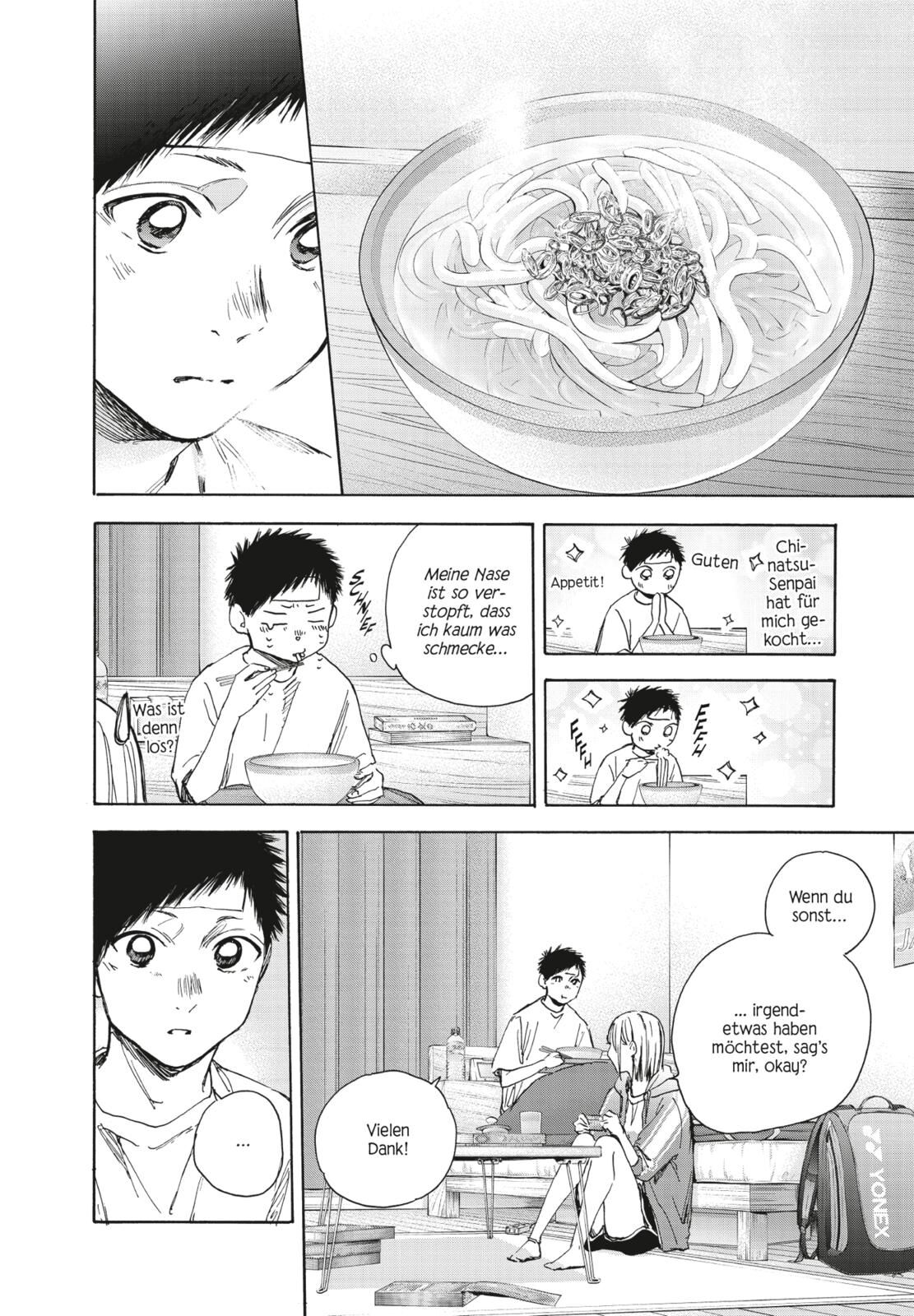 Diese mitreißende Love-Sport-Story besticht durch ihre feine, ruhige Erzählform sowie ihren dynamischen und einmaligen Zeichenstil. Taiki Inomata ist Mitglied der Badmintonmannschaft und in die Basketballspielerin Chinatsu Kano verliebt, eine ältere Mitschüle...